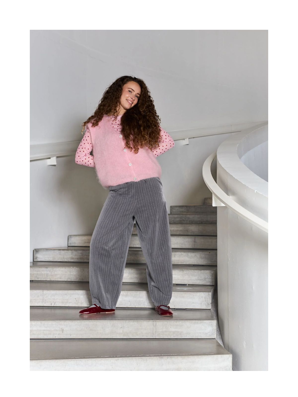 Bjoerk strikvest er en elegant og tidløs vest designet i en blød og let kvalitet. Den har en flot V-udskæring og en ærmeløs silhuet, som gør den perfekt til lag-på-lag styling over skjorter, bluser eller kjoler. Den rene, minimalistiske form giver et sofistikeret look, samtidig med at mohairfibrene tilfører varme og luksuriøs blødhed.