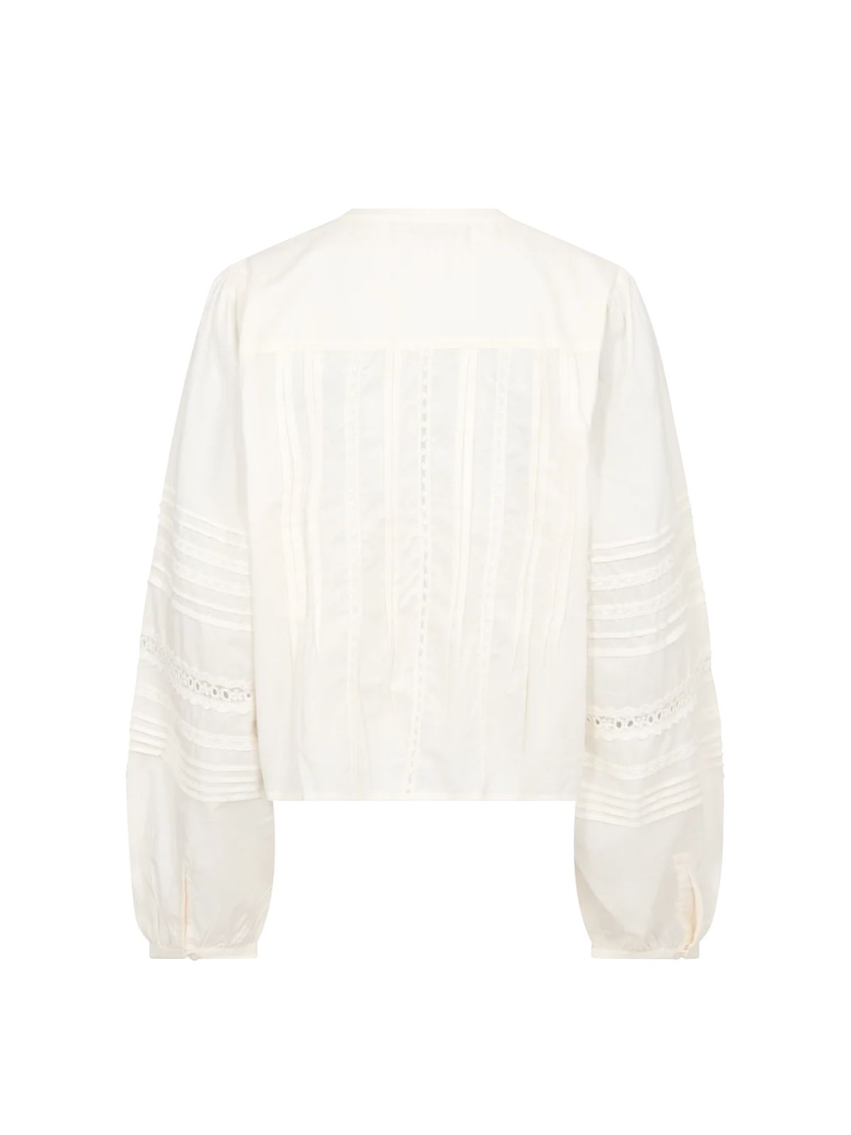 Denne feminine skjorte kombinerer komfort og elegance med smukke detaljer. Den er fremstillet i blød bomuld og har fine pintuck-syninger foran og på ærmerne, hvilket tilfører subtil struktur. Båndkraven og knaplukningen skaber en raffineret silhuet, mens den afslappede pasform sikrer behagelig komfort. Perfekt med jeans eller skræddersyede bukser for et poleret hverdagslook.
