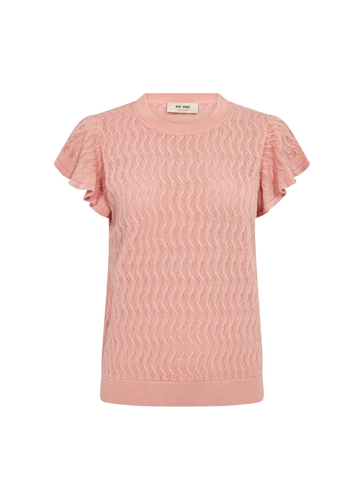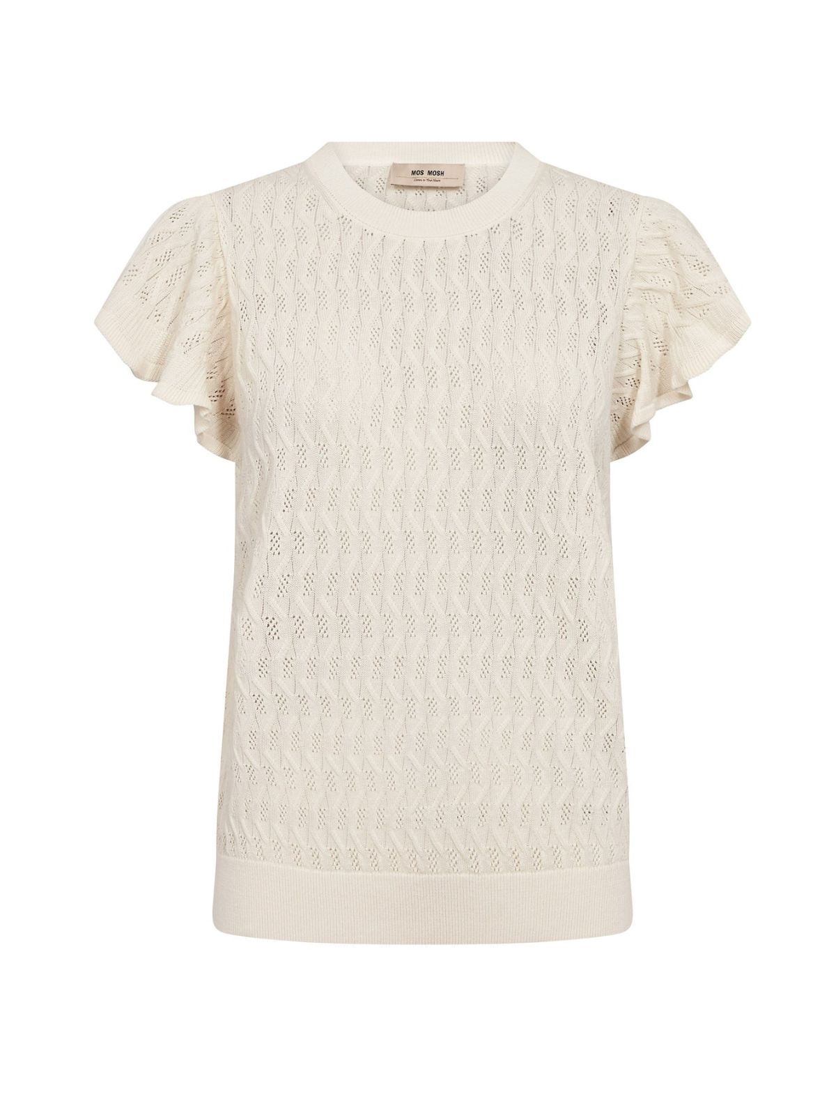Denne lette striktop i økologisk bomuld kombinerer enkelhed med feminine detaljer. Den har et diskret bølgemønster og bløde flæseærmer, klassisk rund hals og regular pasform, hvilket giver et ubesværet og stilfuldt look, der fungerer både alene eller lag-på-lag.