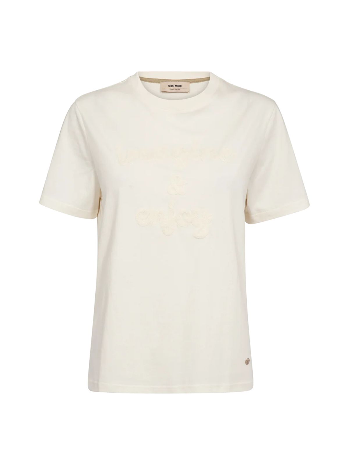 Denne bløde T-shirt i økologisk bomuld har en klassisk pasform og rund hals. Det diskrete broderi foran tilfører et raffineret touch til det ellers enkle design, hvilket gør den perfekt til både skræddersyede bukser og afslappet denim for et ubesværet, chikt hverdagslook.