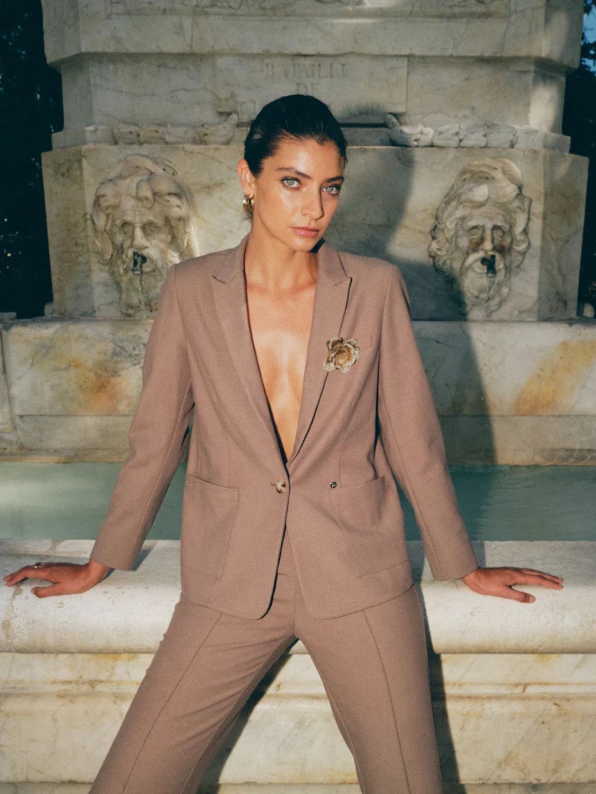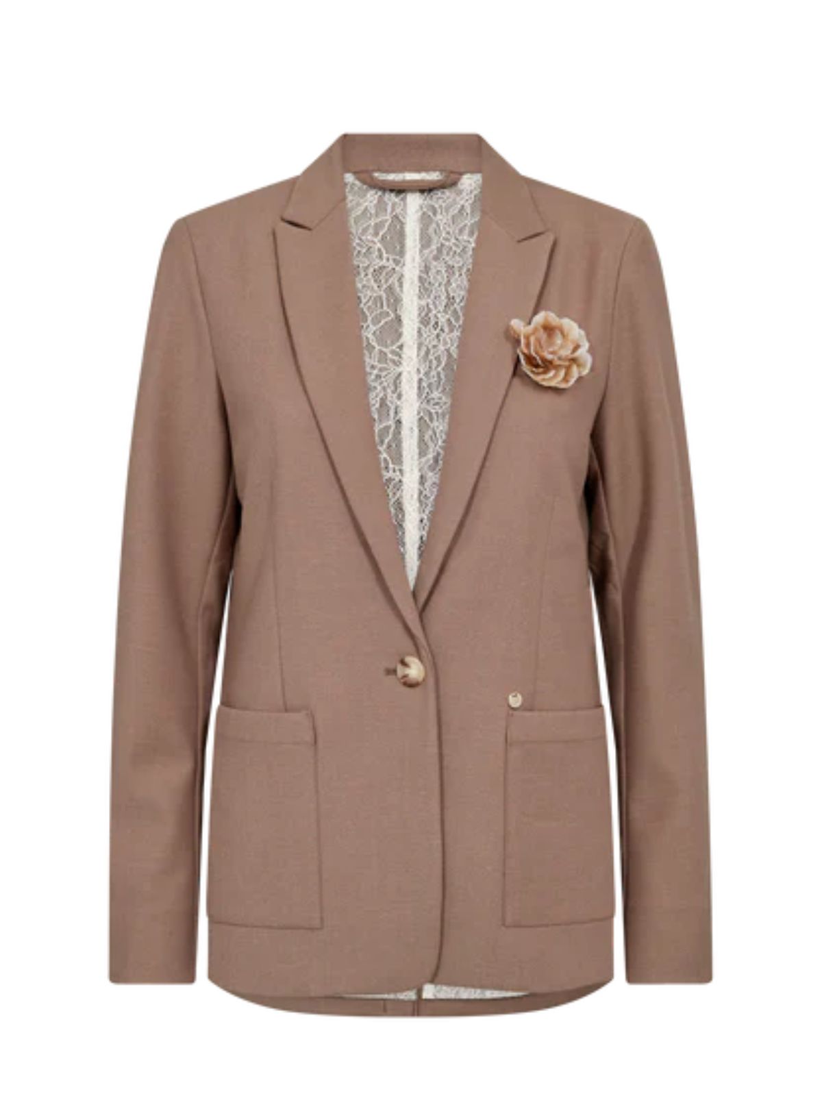 Feminin tidløs blazer jakke fra Mos Mosh designet i en flatterende regular pasform med klassisk reverskrave og knaplukning. Blazer jakken har frontklaplommer og en blød, meleret struktur, der tilfører et raffineret touch. Perfekt til både kontoret og hverdagsbrug – style den med de matchende bukser for et gennemført look eller med jeans for et chikt, afslappet twist.Længde: ca. 70 cm