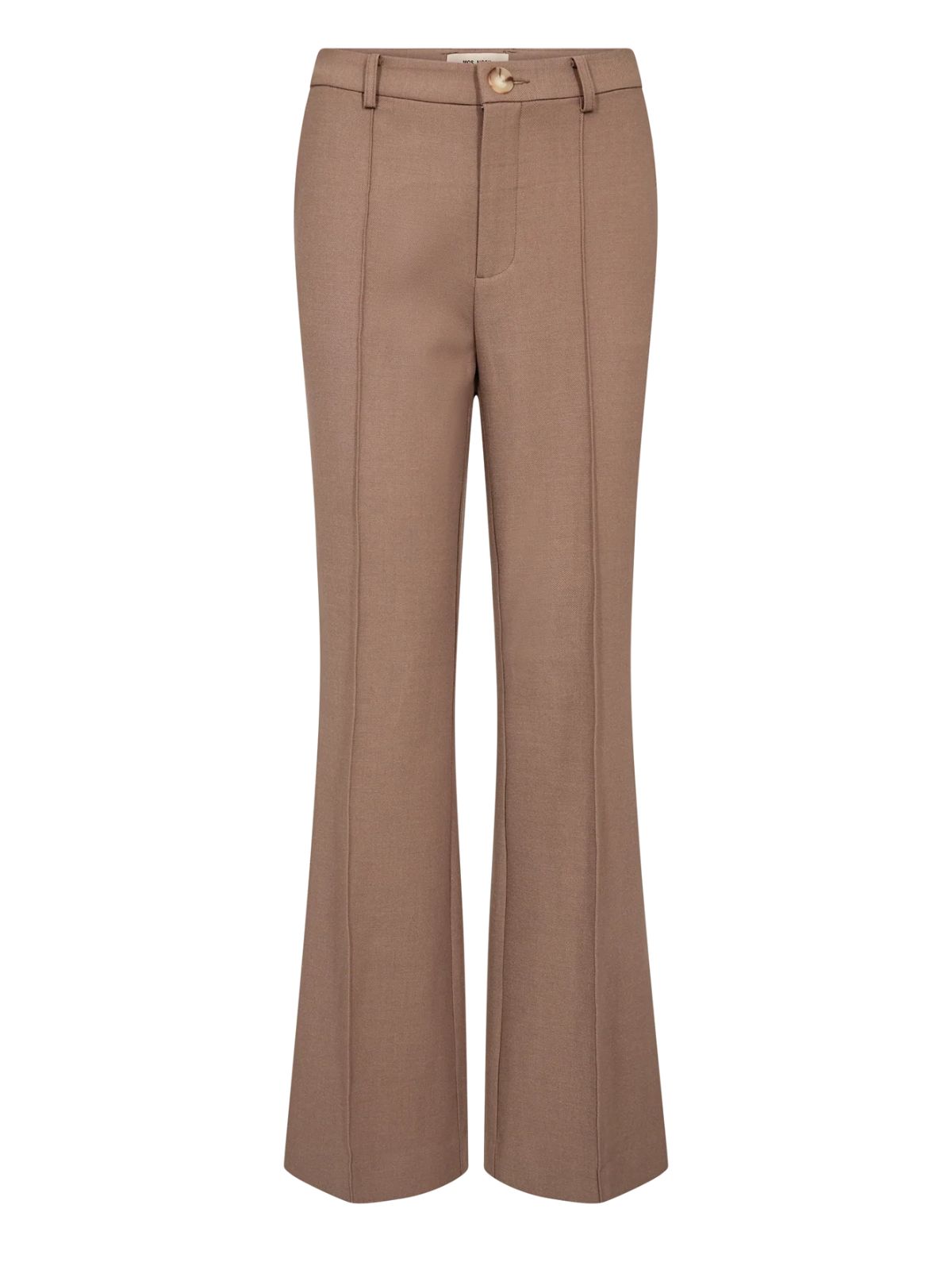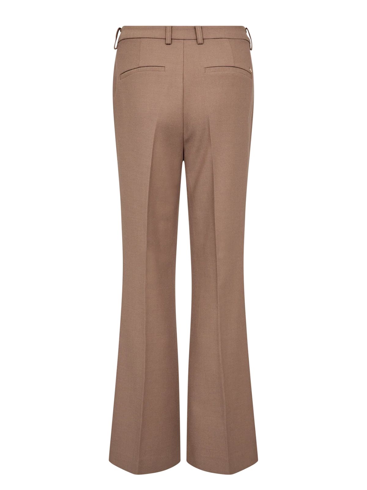 Skræddersyede bukser fra Mos Mosh er designet i en flatterende pasform med mellemhøj talje og let svaj ved anklen for en tidløs silhuet. Bukserne har pressefolder, sidelommer og paspolerede baglommer, der tilfører et sofistikeret touch. Det bløde, melerede materiale giver både struktur og komfort, hvilket gør dem perfekte til både arbejde og hverdagsbrug.Indvendig Benlængde: ca. 80 - 82 cm