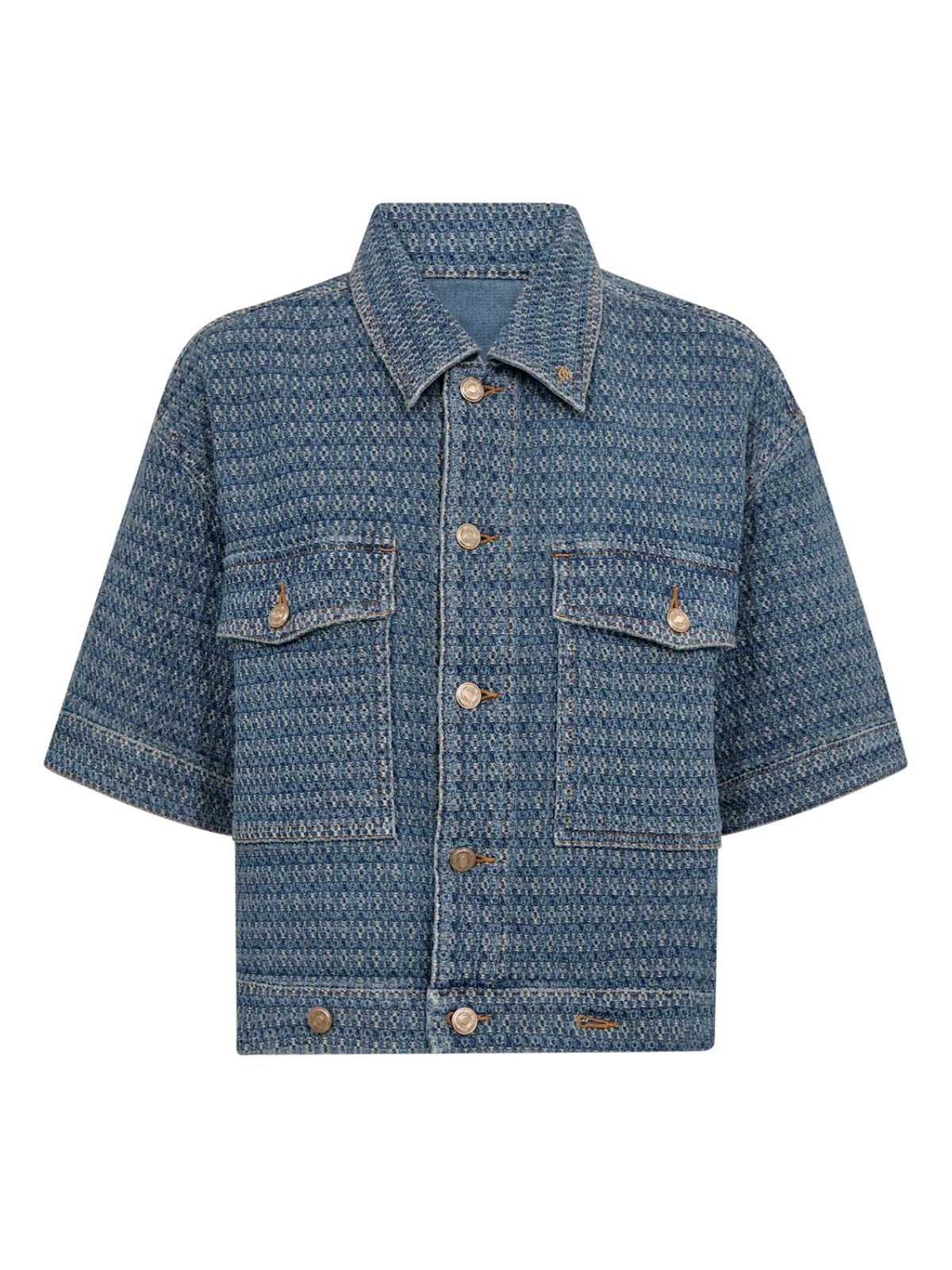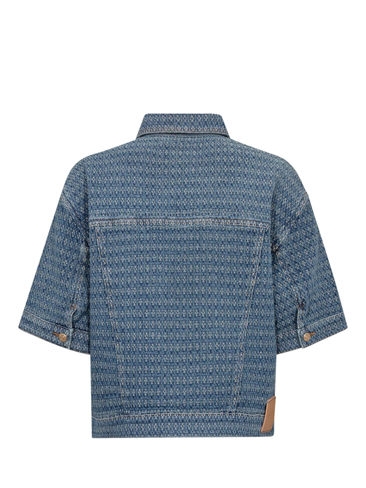 Innovativ og klassisk denimjakke fra Mos Mosh med et flot mønster. og designet i en afslappet pasform med korte ærmer. Jakken har klassisk krave og har smuk knaplukning samt frontlommer for et afslappet, men raffineret udtryk. Det strukturerede denim tilfører et unikt touch.Længde: ca. 60 cm