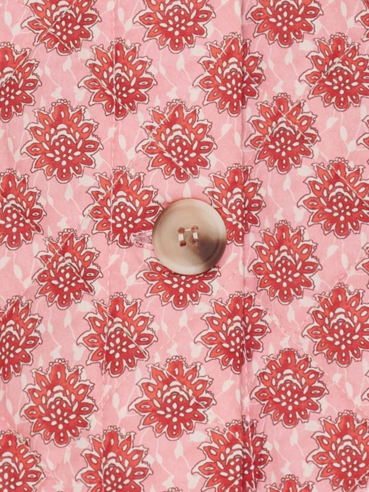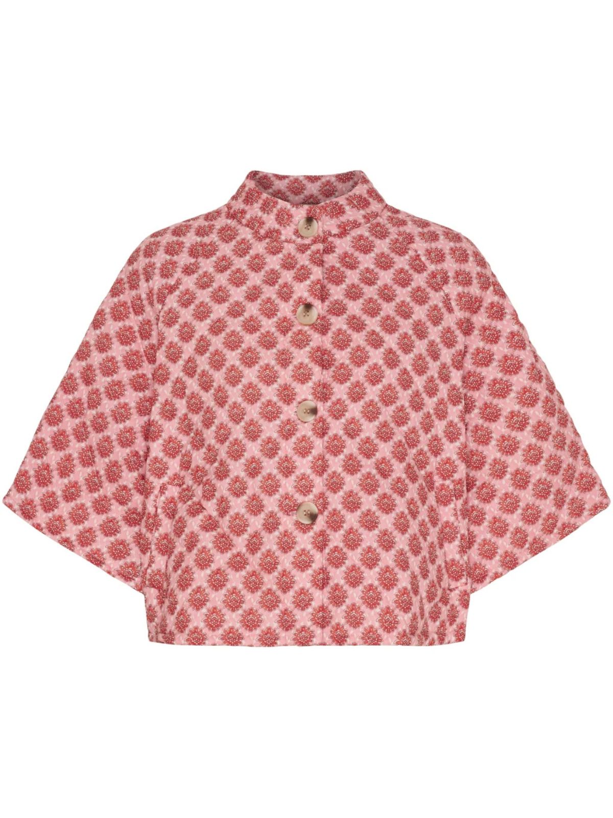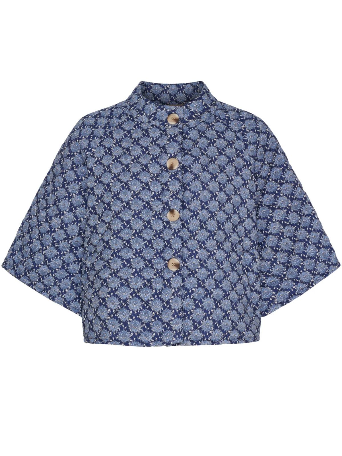 Feminin quiltet jakke cape fra Marta Du Chateau i et romantisk grafisk mønster med fine detaljer.Jakken har korte, rummelige ærmer, rund hals og dekorative knapper foran, som giver et charmerende og elegant udtryk.