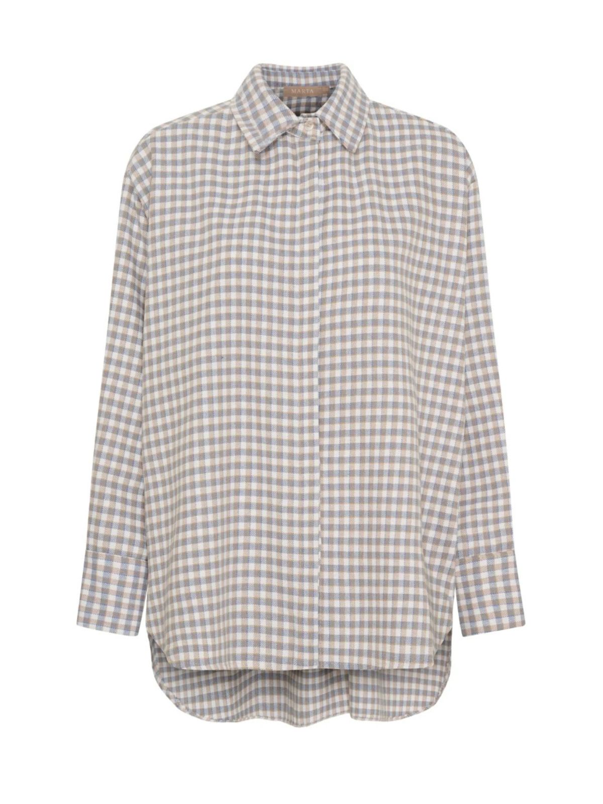Smart storskjorte fra MARTA i ternet design. Skjorten har krave, knaplukning samt lange ærmer med bred manchet og afrundede kanter. Komfortabel skjorte over en slank buks.Farve: BLUE