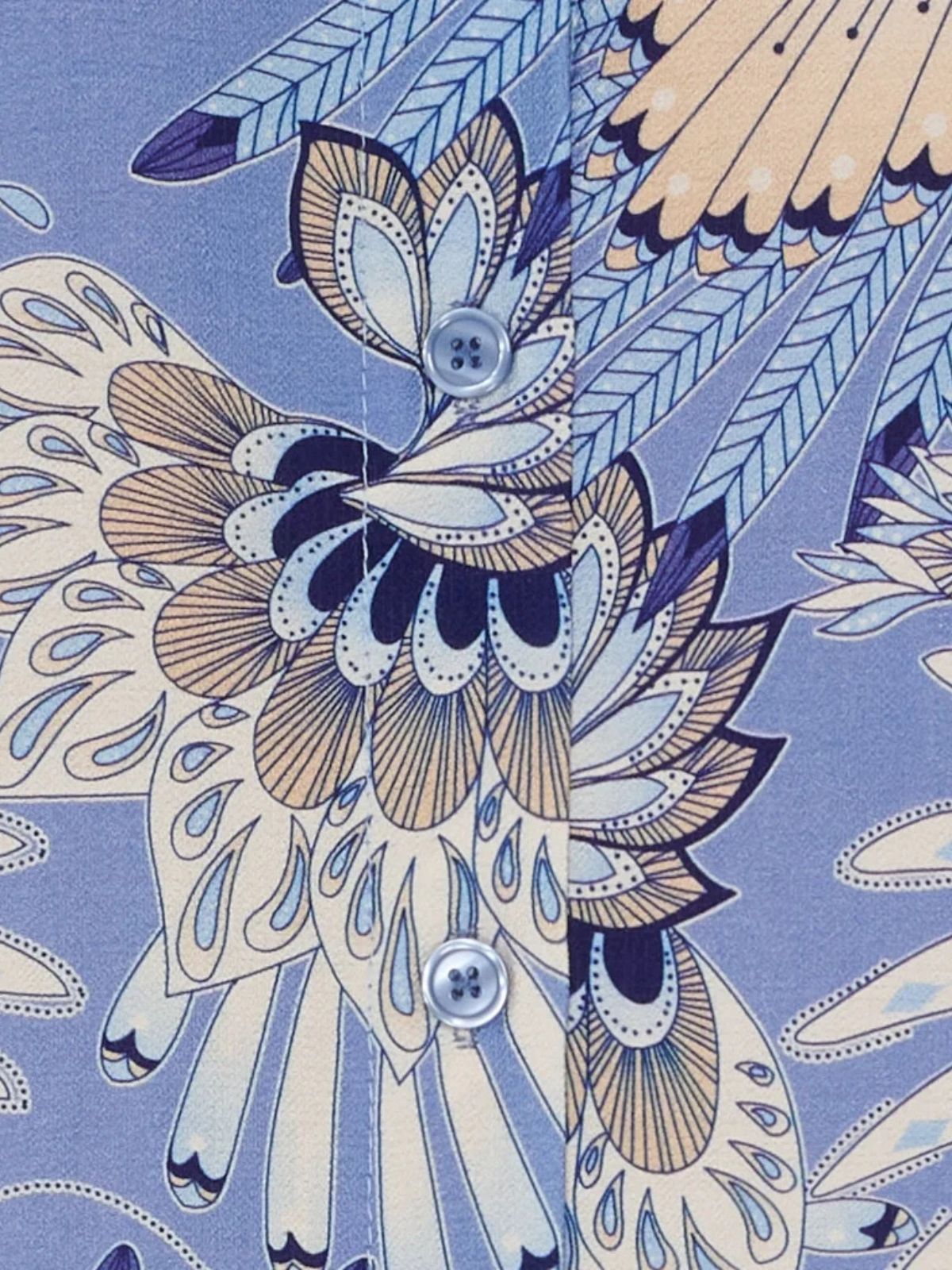 Elegant printet kjole fra Marta Du Château. Kjolen er gennemknappet, har krave og smock ved ærmer samt let rundet kant forneden. Kjolen til både hverdag og finere anledninger.S/M - Længde: 123 cm.