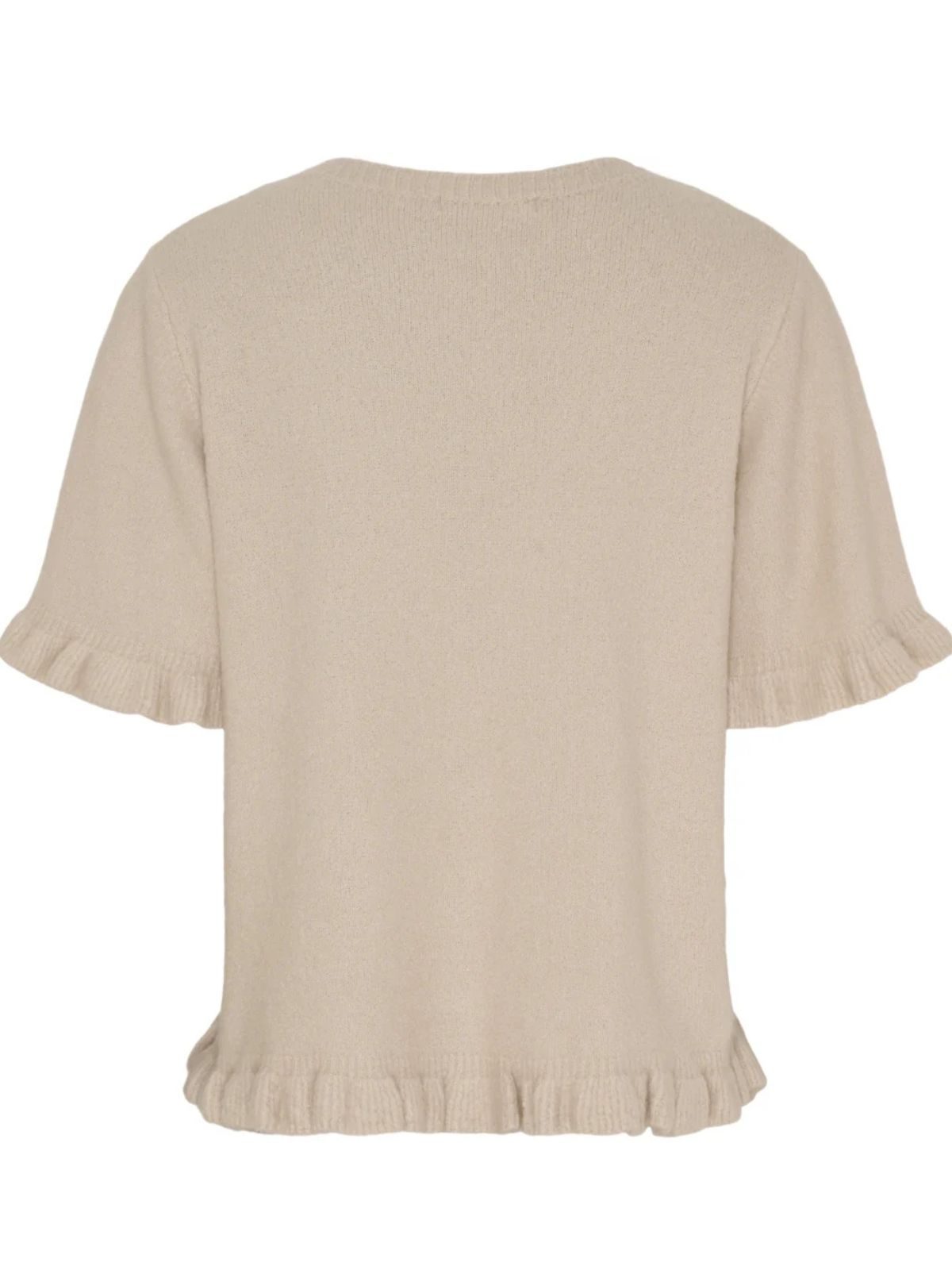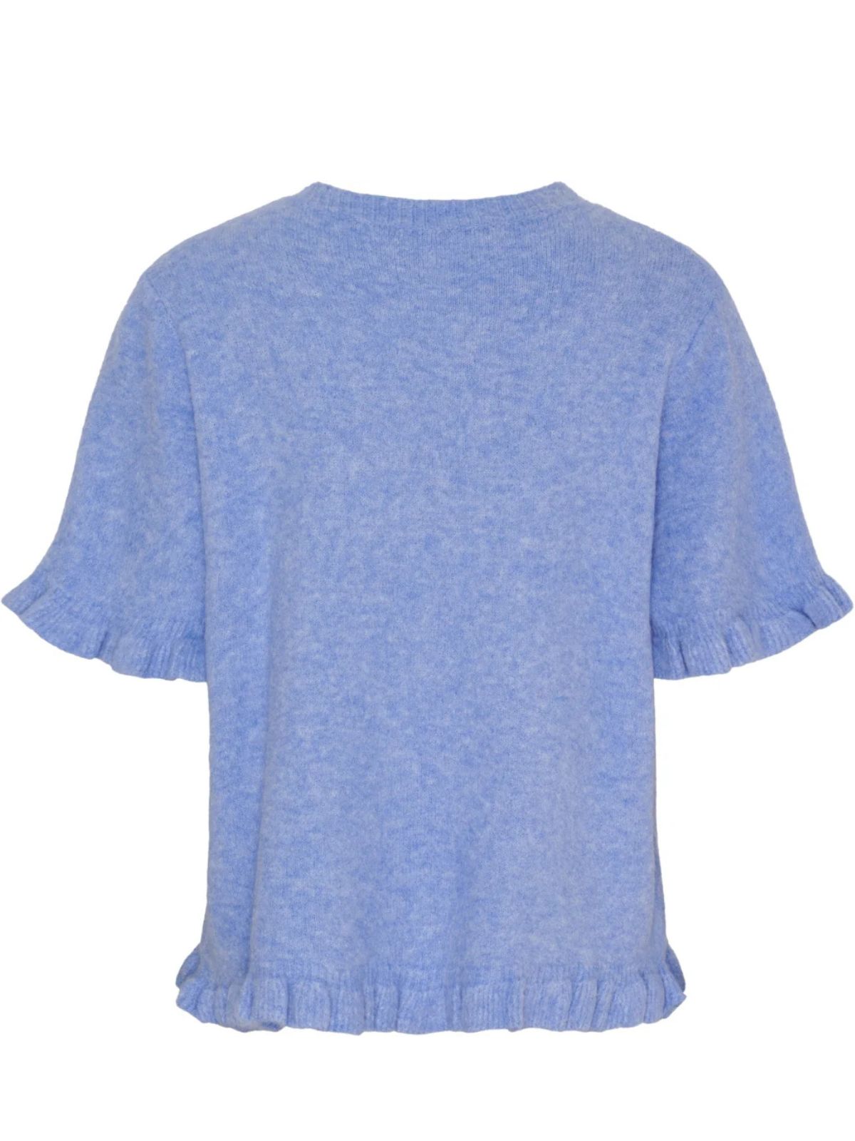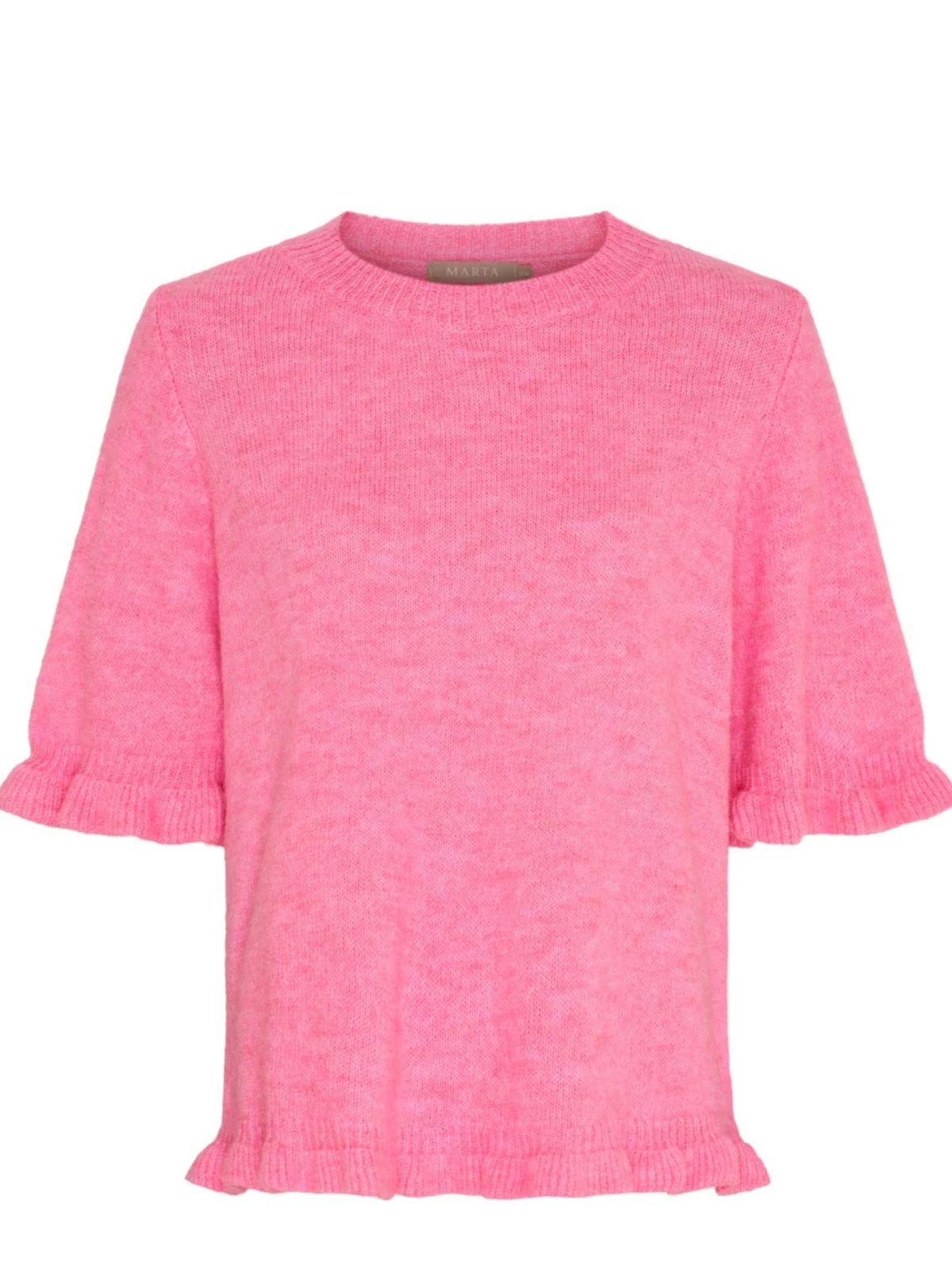 Feminin BRIALA kortærmet strikbluse fra Marta med flæse ved ærme kant og bund. Lækker blød struktur der giver et flot udtryk sammen med både buks eller nederdel.Pasform: Normal
