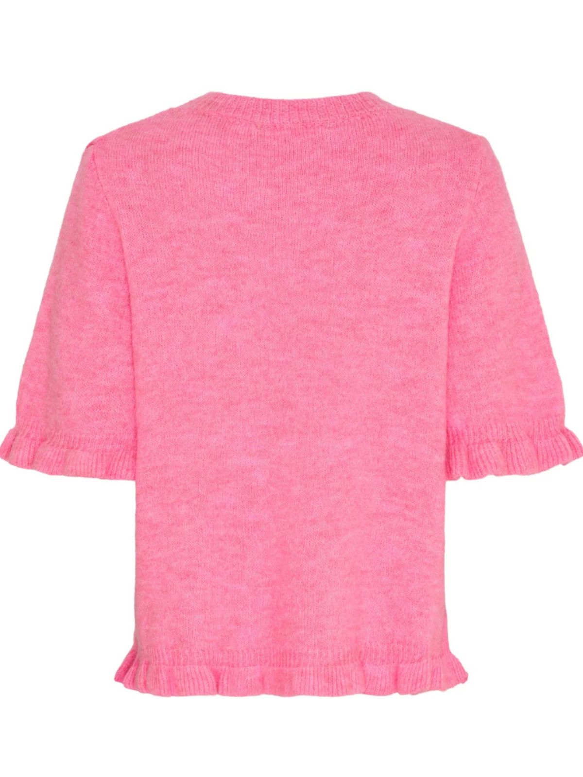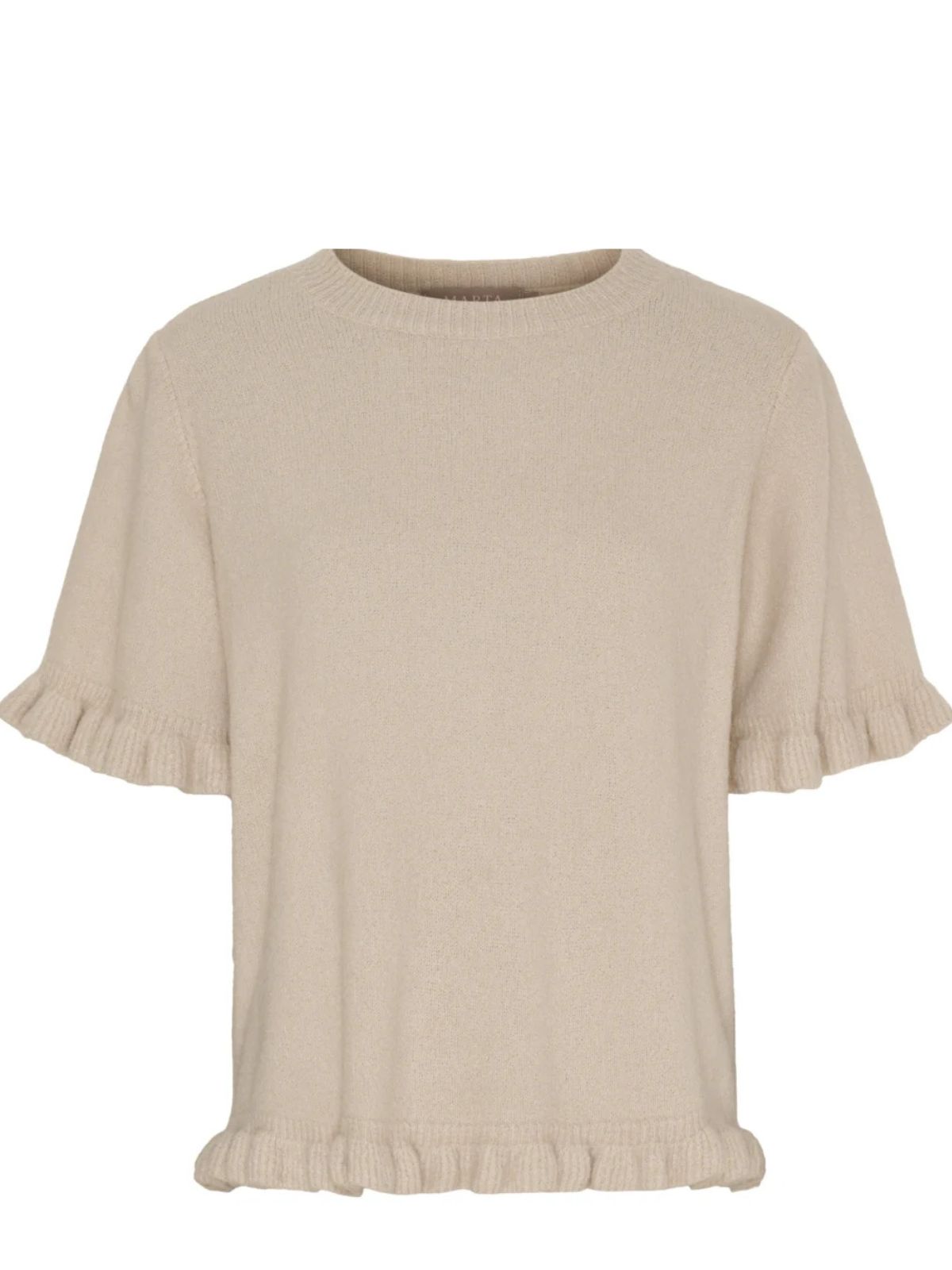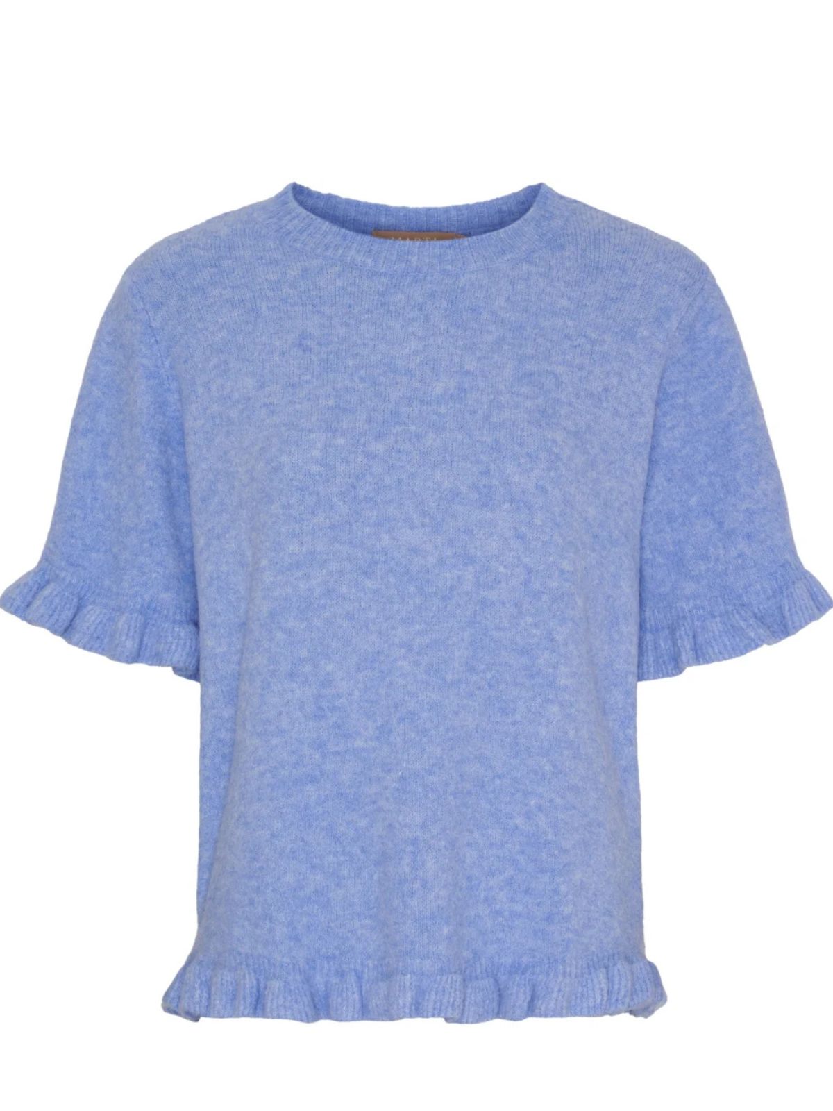 Feminin BRIALA kortærmet strikbluse fra Marta med flæse ved ærme kant og bund. Lækker blød struktur der giver et flot udtryk sammen med både buks eller nederdel.Pasform: Normal
