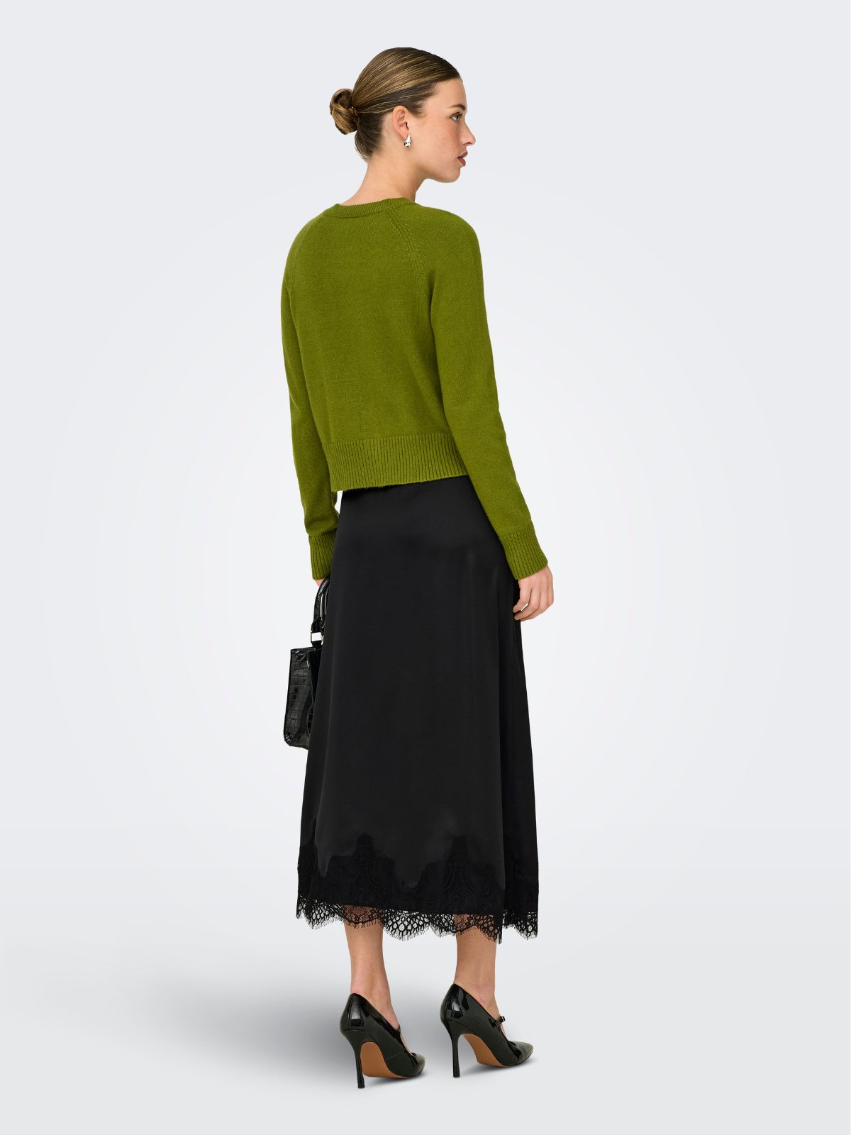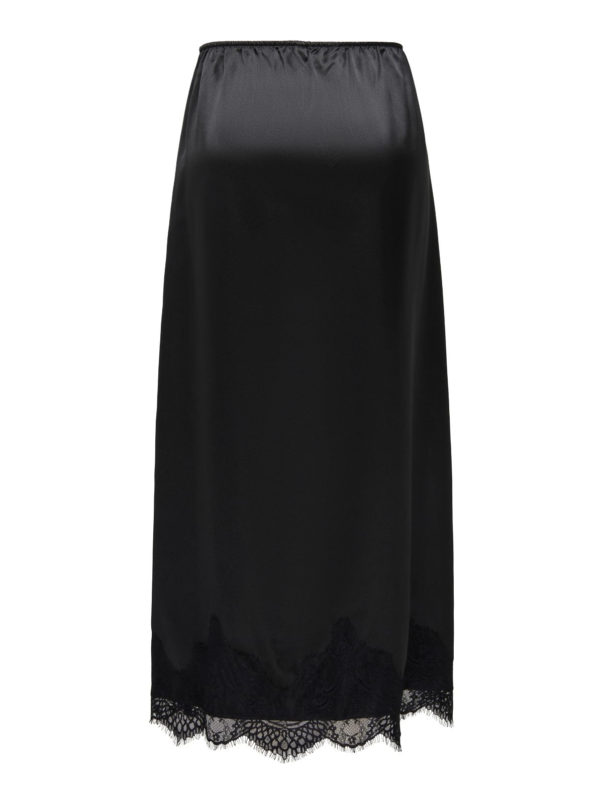 Smart satin nederdel fra ONLY med dekorativ blondekant forneden. Nederdelen har elastisk talje for ekstra komfort. En flot nederdel til både hverdag og festlige anledninger!Farve: BLACK