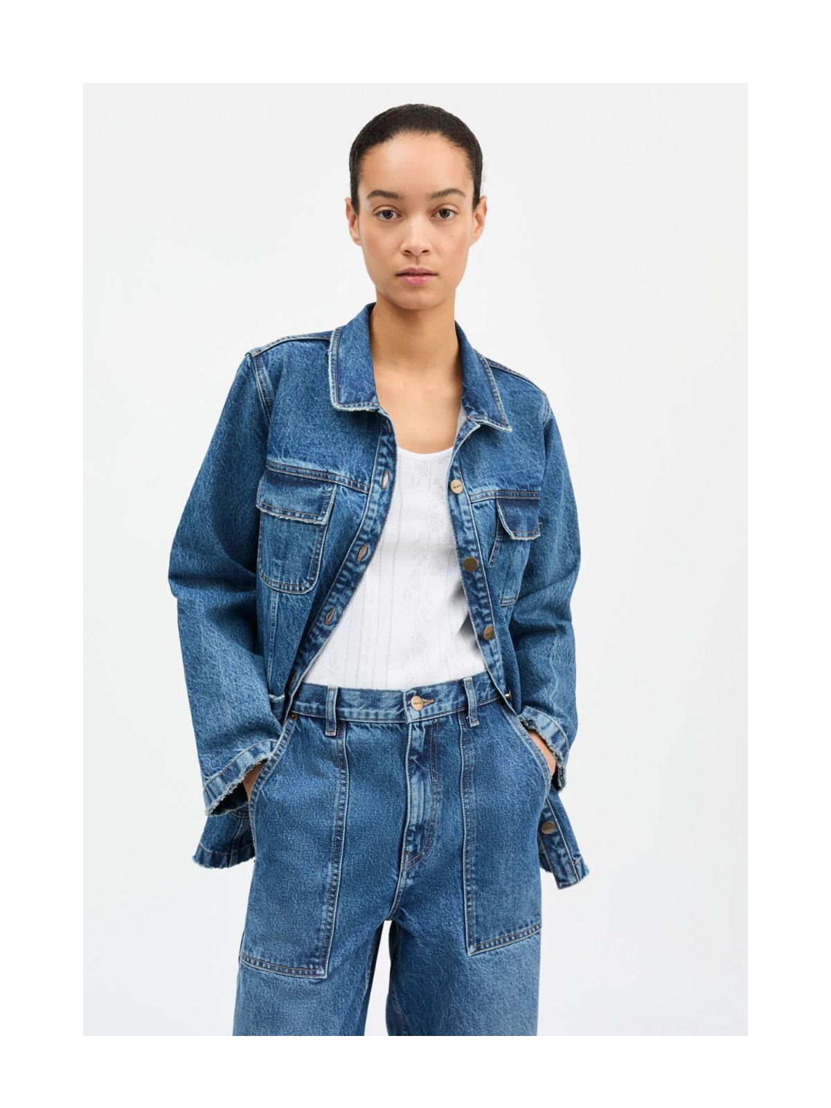 Oversized denim skjortejakke fra SKALL med lommer på fronten. Skjorten har klassisk krave samt metal knaplukning og lange ærmer.Længde: 75 cm