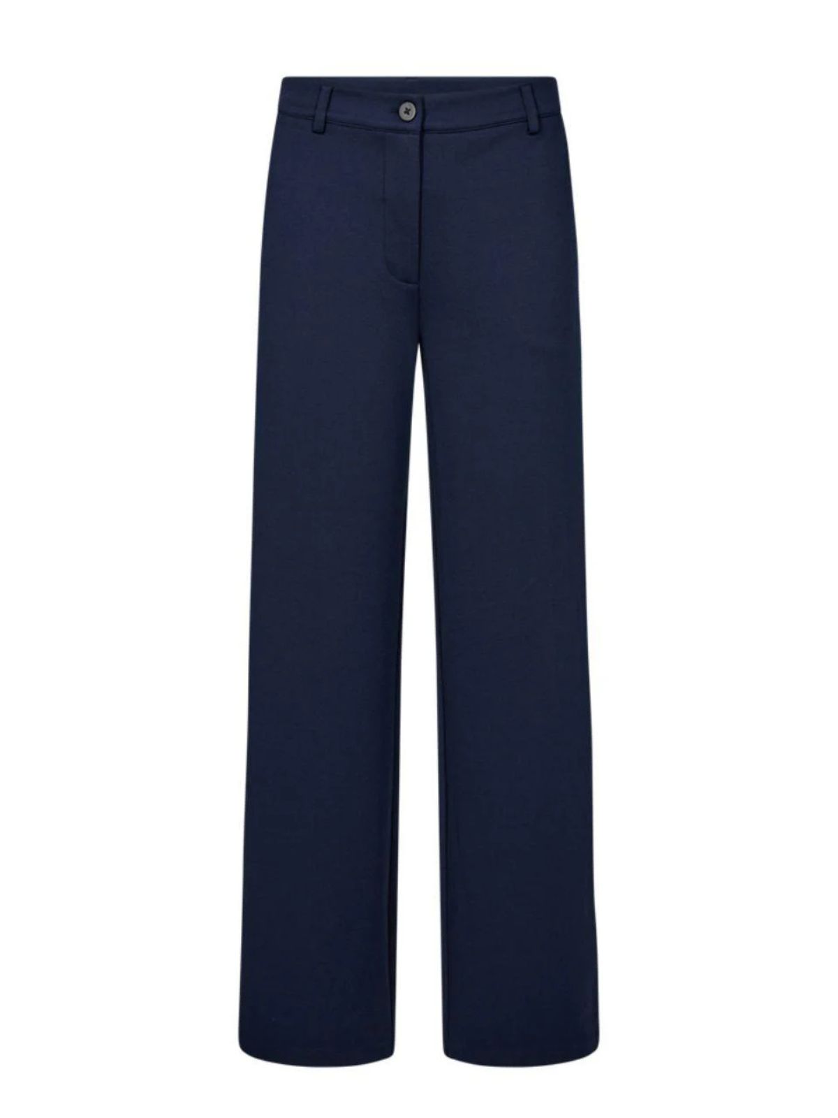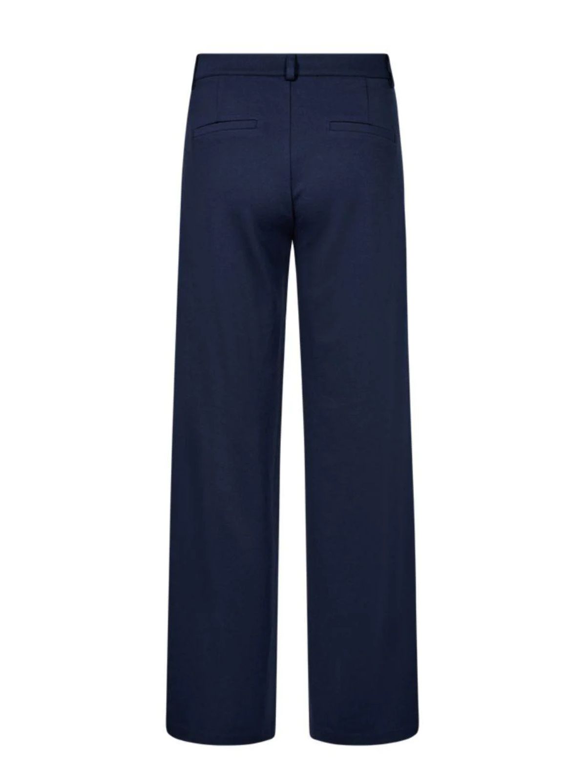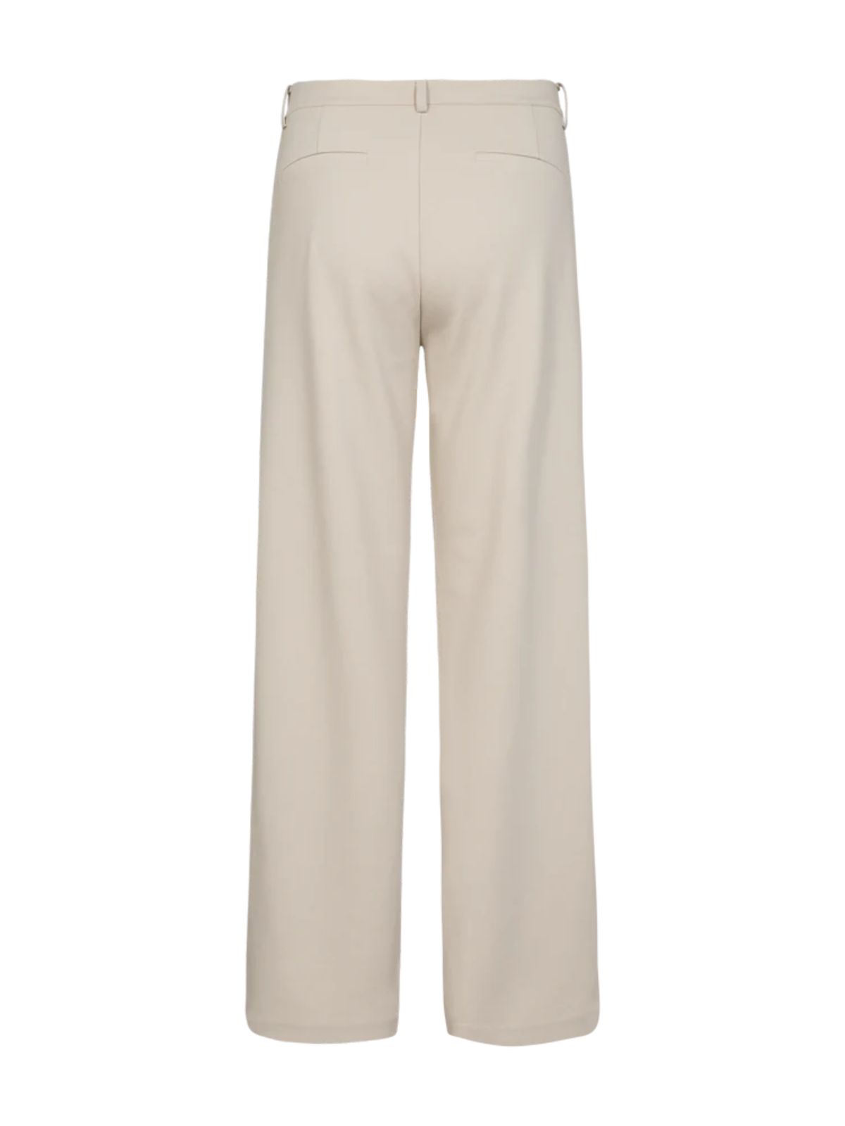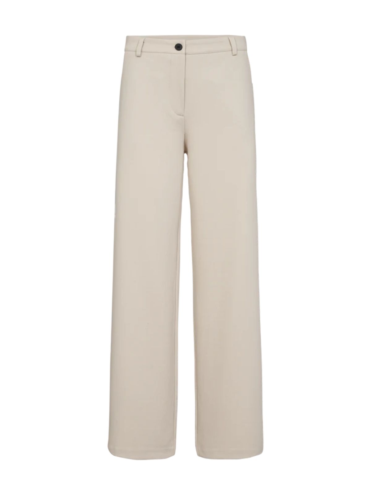 Feminine bukser fra Freequent i en blød kvalitet. Bukserne er enkle i modellen med knap- og lynlåslukning, skrå sidelommer, en lige pasform samt en høj talje.Indvendig Benlængde: ca: 82 cm