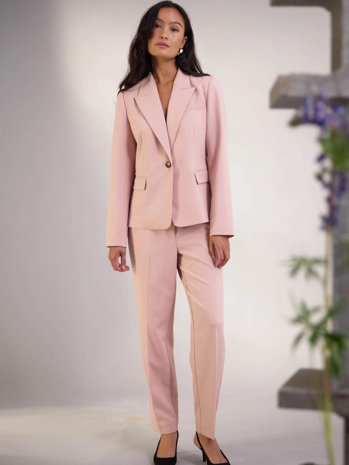 Raffinerede Lamosa bukser fra PBO med en lige silhuet og klassisk presfold samt regular talje, som giver et elegant og velsiddende udtryk i det let strukturerede materiale.Style buksen som et sæt med den matchende Bani blazer for et moderne, sofistikeret look. Tilføj en enkel top og hæle for et poleret outfit til både kontor og aften.