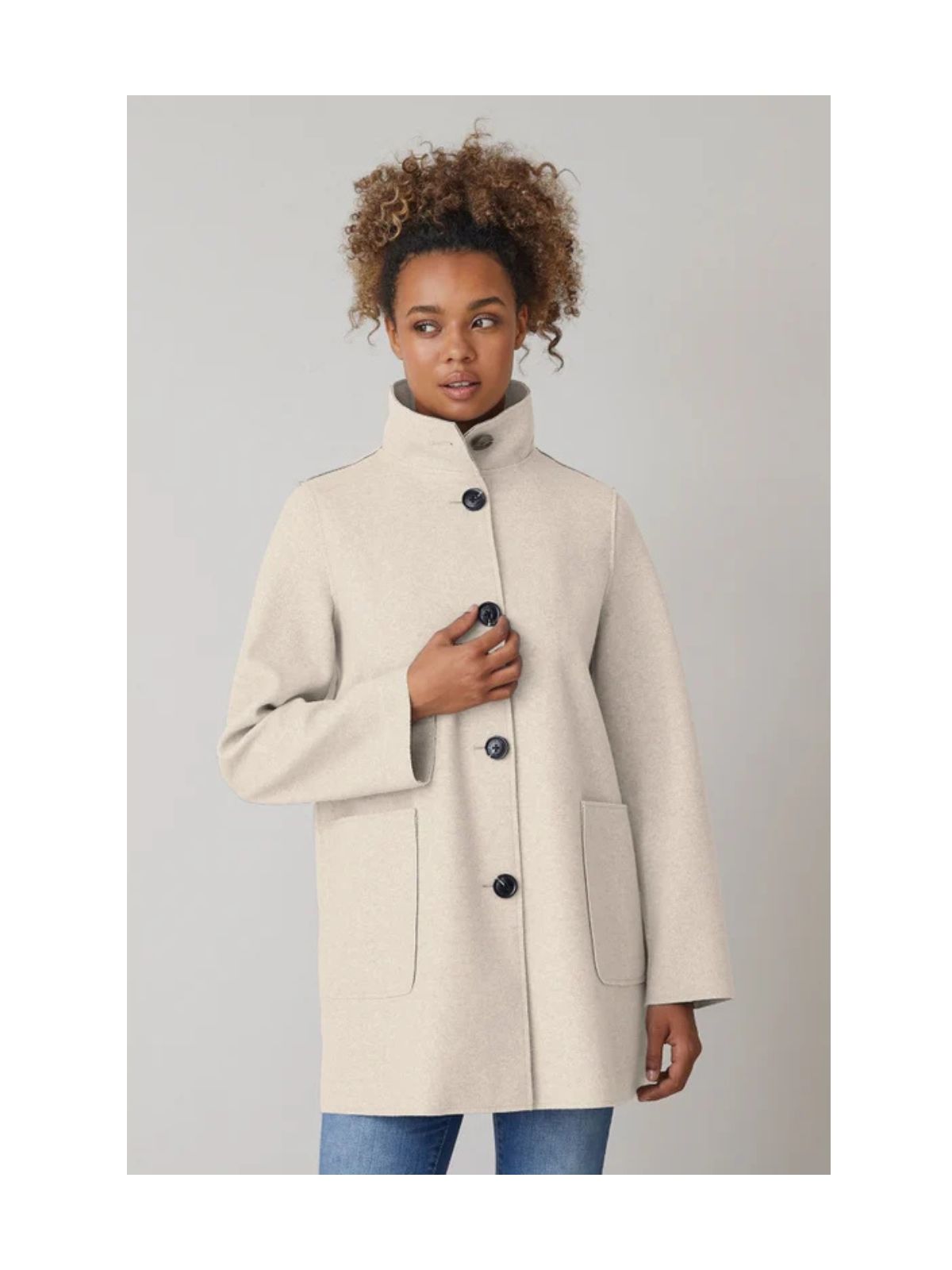 Elegant feminin jakke fra JUNGE med et rent, moderne snit.Designet med knapper i hornlook foran og praktiske påsatte lommer for et stilfuldt og tidløst udtryk.
