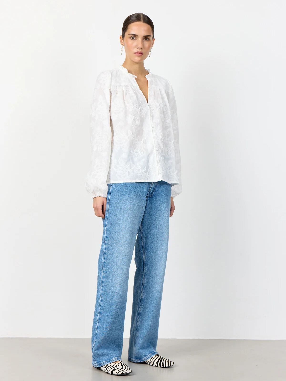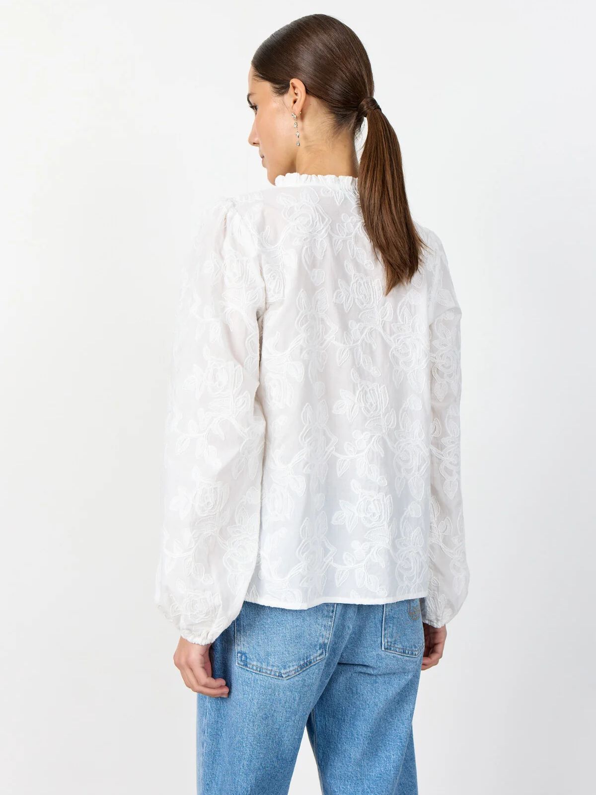 POLLIE 2 fra LEVETÈ er en feminin bluse fremstillet af 100 % bomuld. Blusen har et fint broderet blomsterprint, knaplukning, en diskret flæsekrave og lange ærmer med knaplukning. Style den med skræddersyede bukser eller jeans for et elegant look!Længde: ca. 62 cm målt i str. M