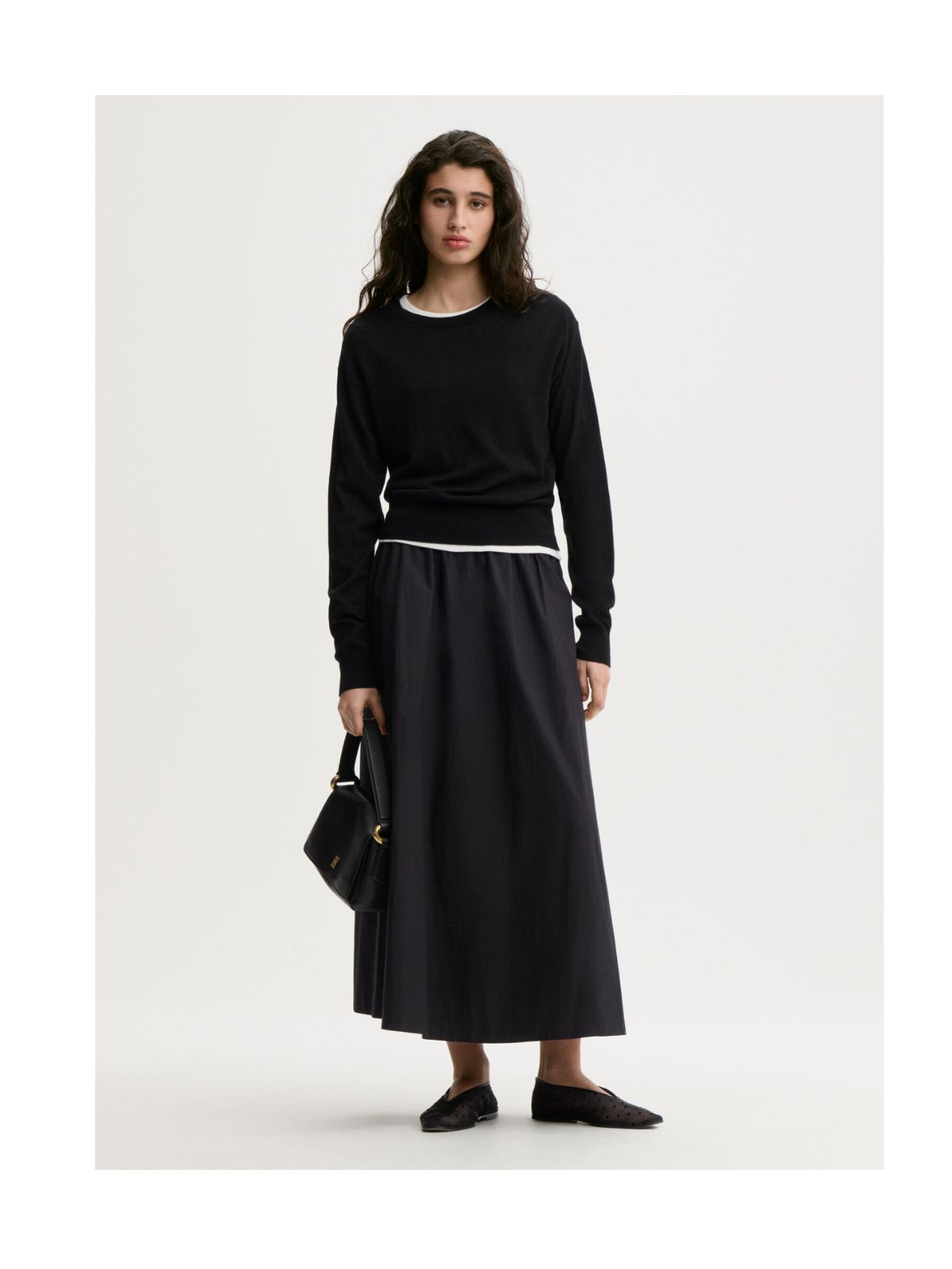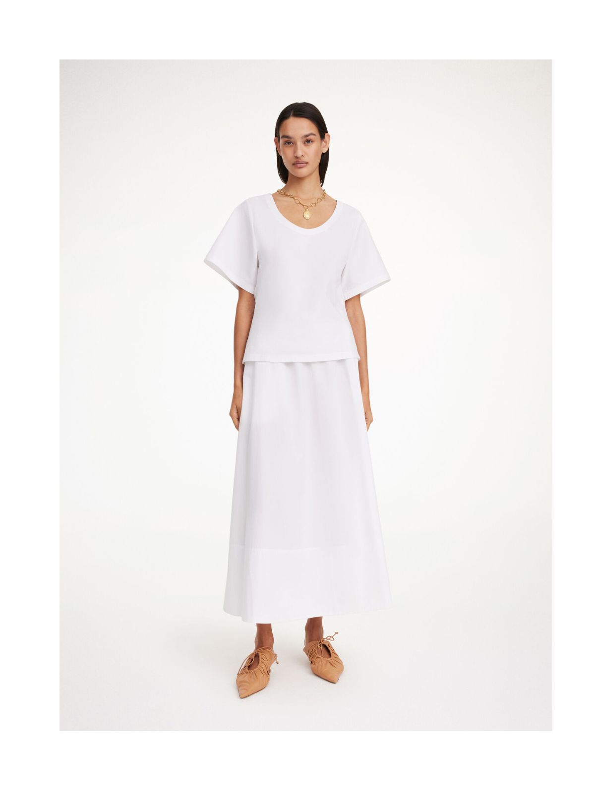 Pheobes maxinederdel fra By Malene Birger er essentiel i enhver forårsgarderobe. Nederdelen i økologisk bomuld har et elastisk bånd, som sidder højt i taljen, og en løs silhuet.Længde: MAXI