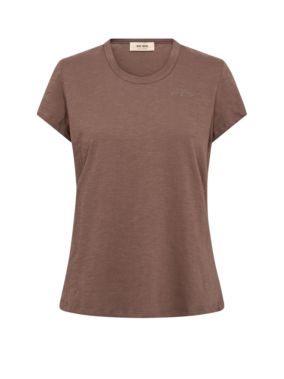 Klassisk T-shirt fra Mos Mosh i bomuld med klassisk rund hals, korte ærmer og en regular pasform. Et garderobemust-have. T-shirten er designet med et diskret tone-i-tone logo på brystet for et rent og tidløst udtrykLængde: ca. 60 cm