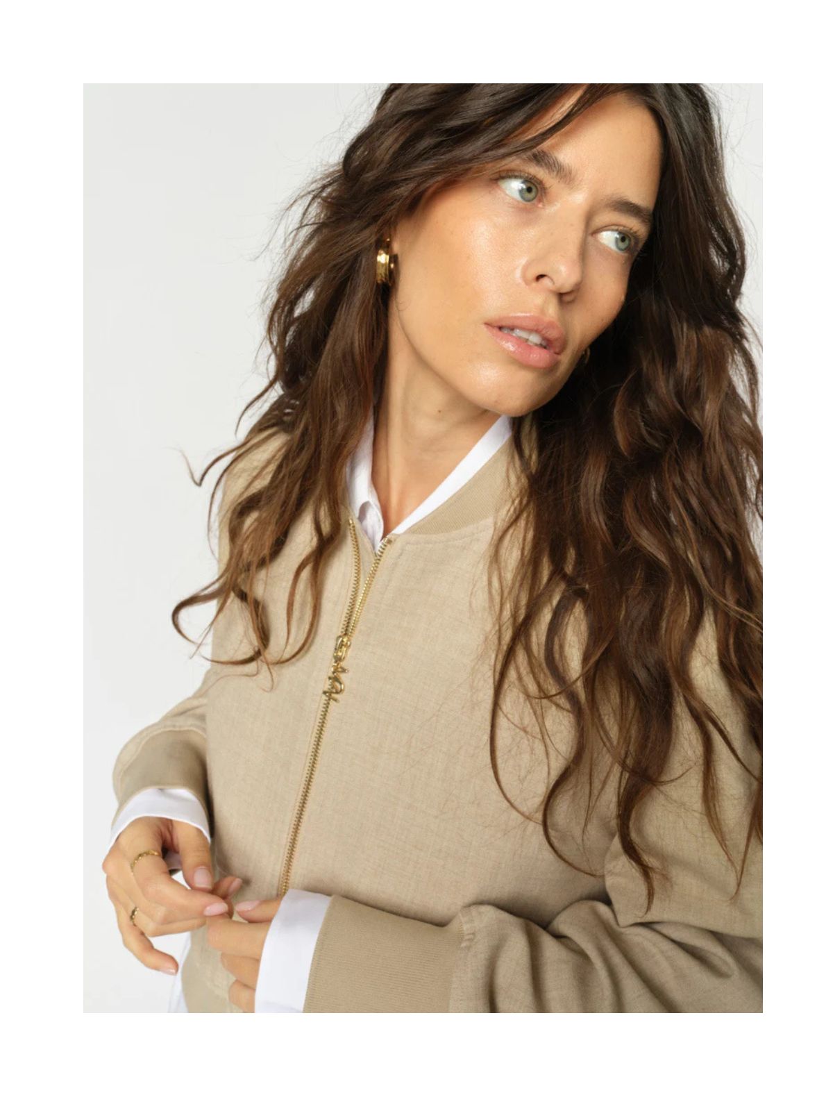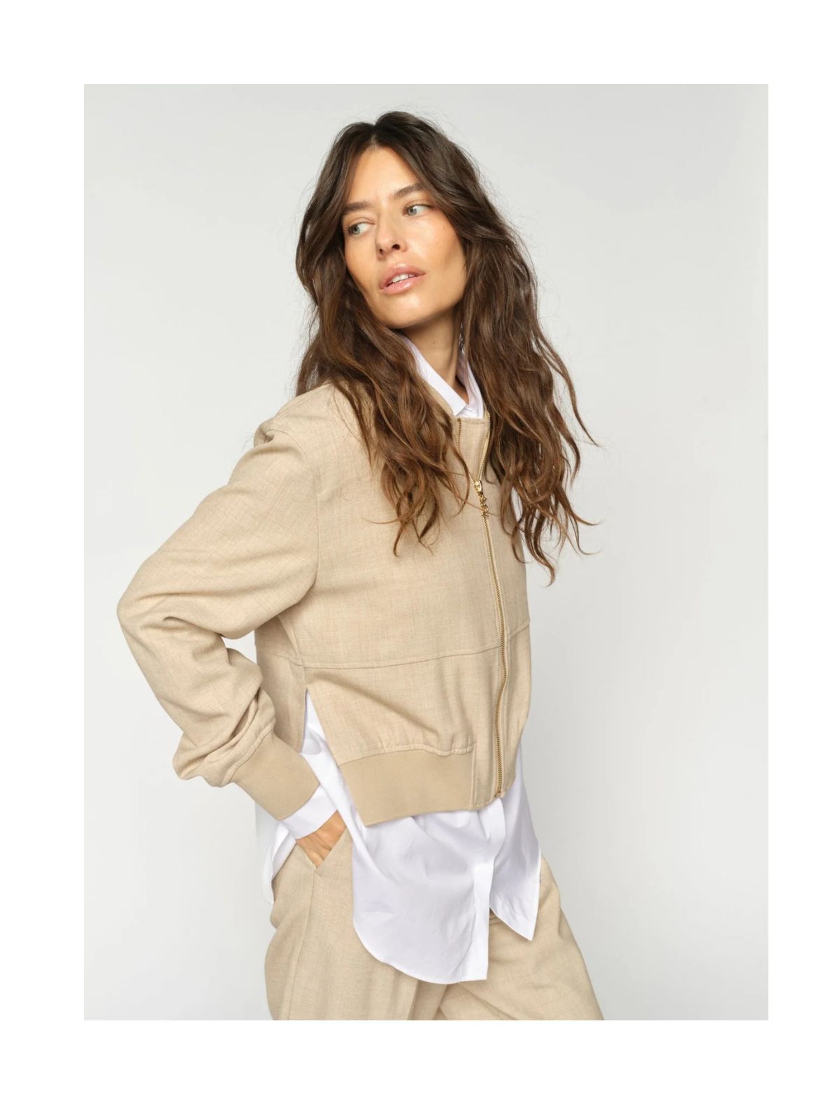 Sofistikeret bomberinspireret kort jakke fra Mos Mosh i en genanvendt polyesterblanding med et strejf af stretch for ekstra komfort. Jakken er designet i en afslappet pasform med ren lynlåslukning og ribdetaljer, der skaber en diskret kontrast.Længde: ca. 58 cm