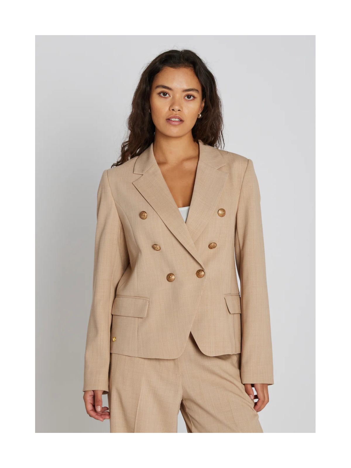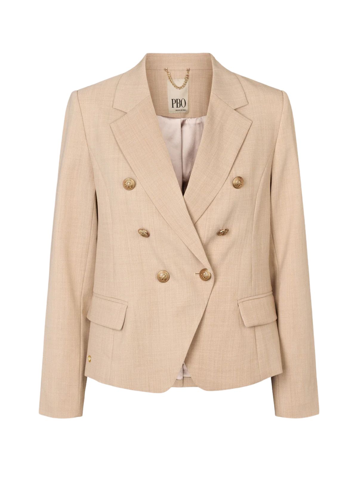 2252PBO CROMBIE BLAZER er en klassisk, dobbeltradet blazer med let figursyet pasform, der giver et tidløst og elegant udtryk. De dekorative knapper og det klassiske revers tilføjer stilfulde detaljer, mens den alsidige model kan styles med matchende bukser for et sofistikeret sæt eller bruges over en bluse og jeans for et mere afslappet, men poleret look.