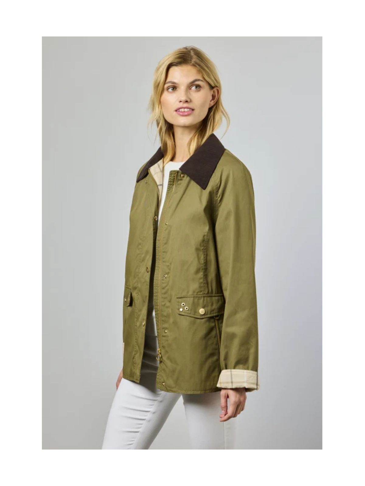 En stilfuld og funktionel jakke fra JUNGE i en holdbart bomuld-nylon blanding med voksbehandling for en vandafvisende finish.Jakken har lynlåslukning og ekstra vindfang med trykknapper foran samt en fløjs krave for et unikt touch.