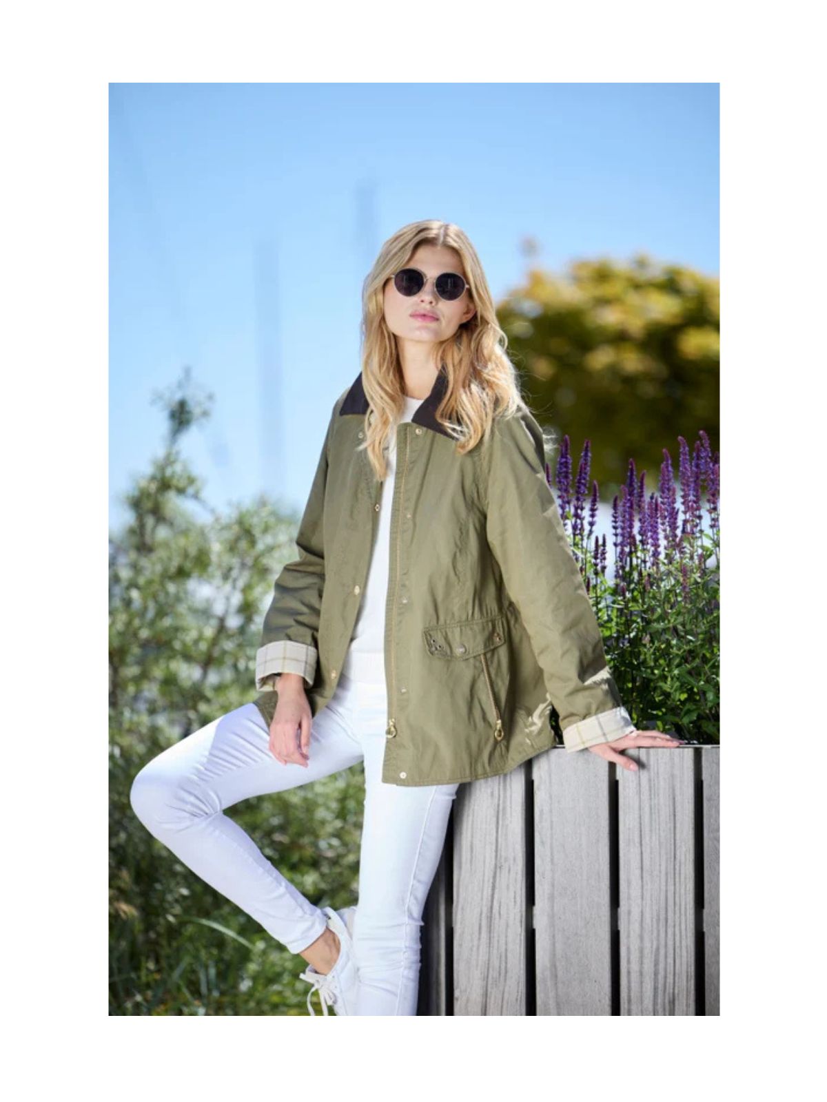 Indvendigt løfter det elegante ternede foer i kroppen og manchetterne designet og tilføjer et sofistikeret og raffineret udtryk.