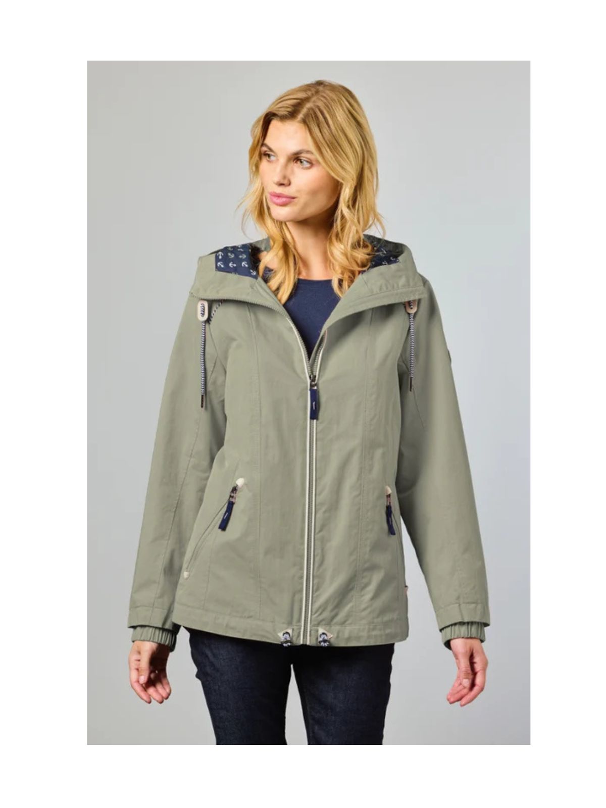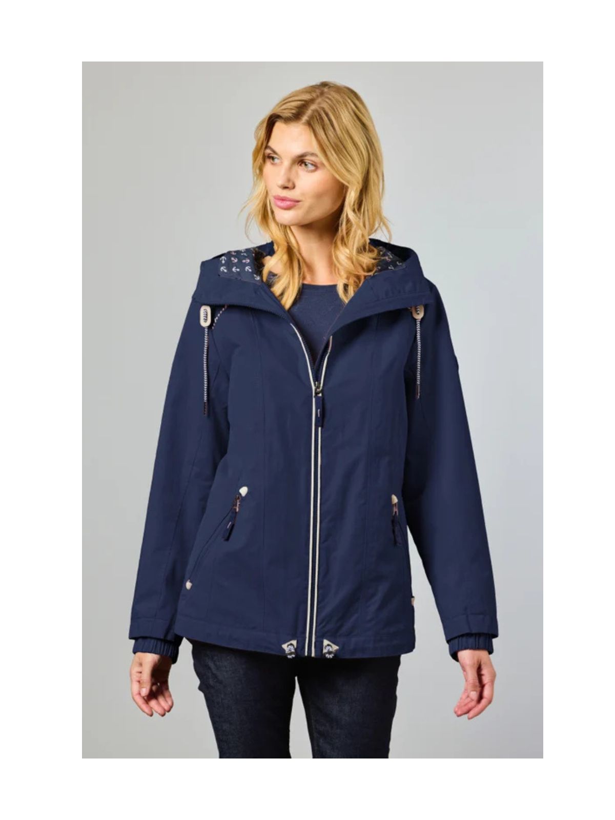 Indvendigt er jakken halvforet med et charmerende ankerprint både i foeret og i hætten.