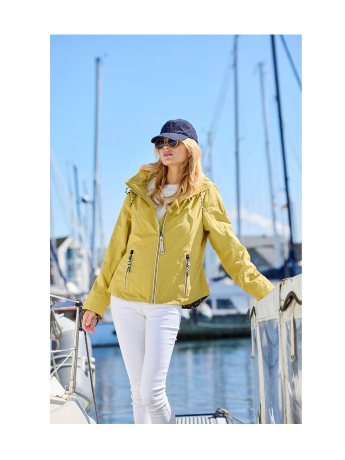Indvendigt er jakken halvforet, og både krop og hætte er forsynet med et charmerende ankerprint, der tilfører et frisk og legende præg.