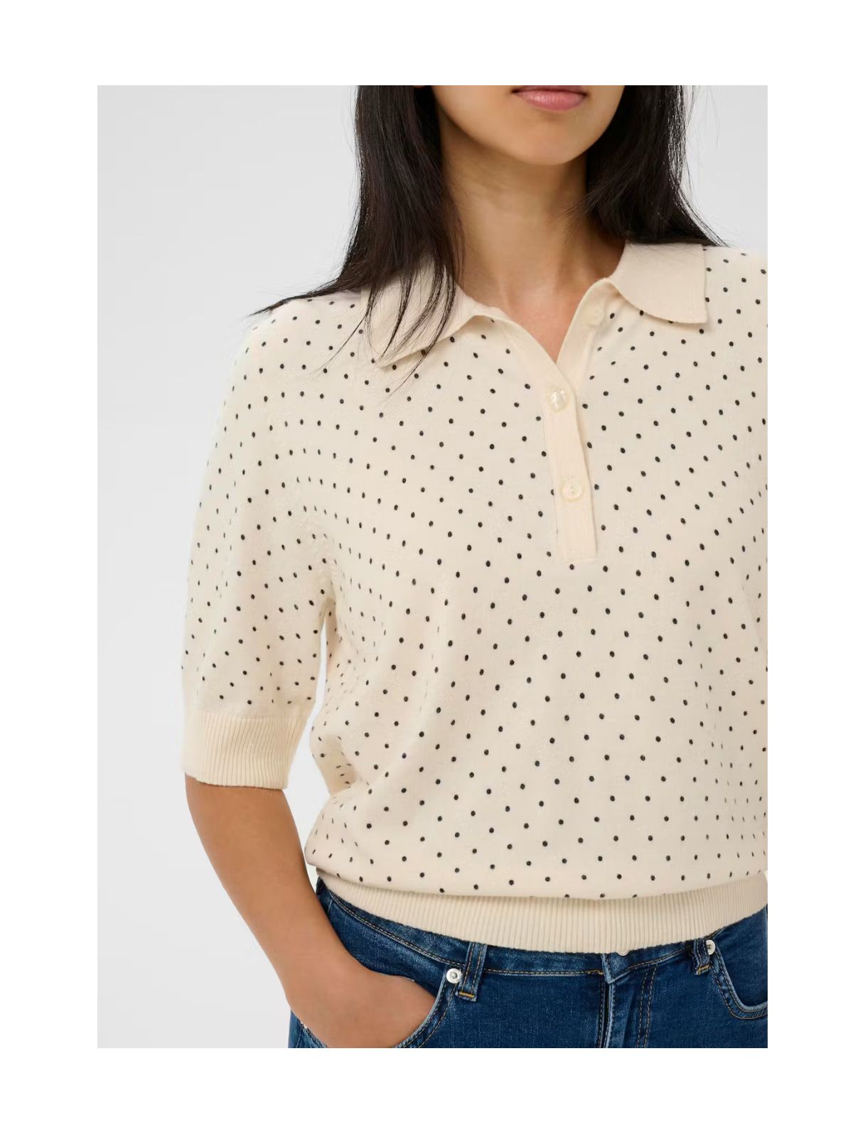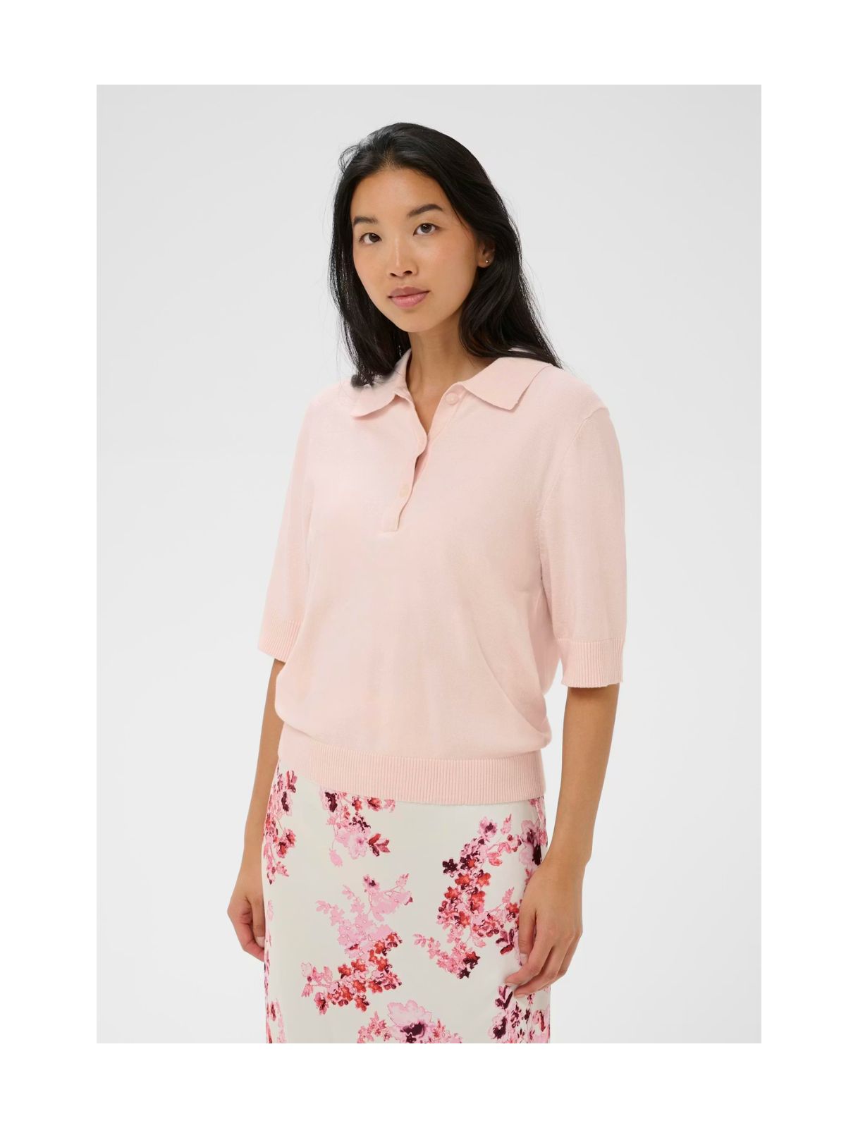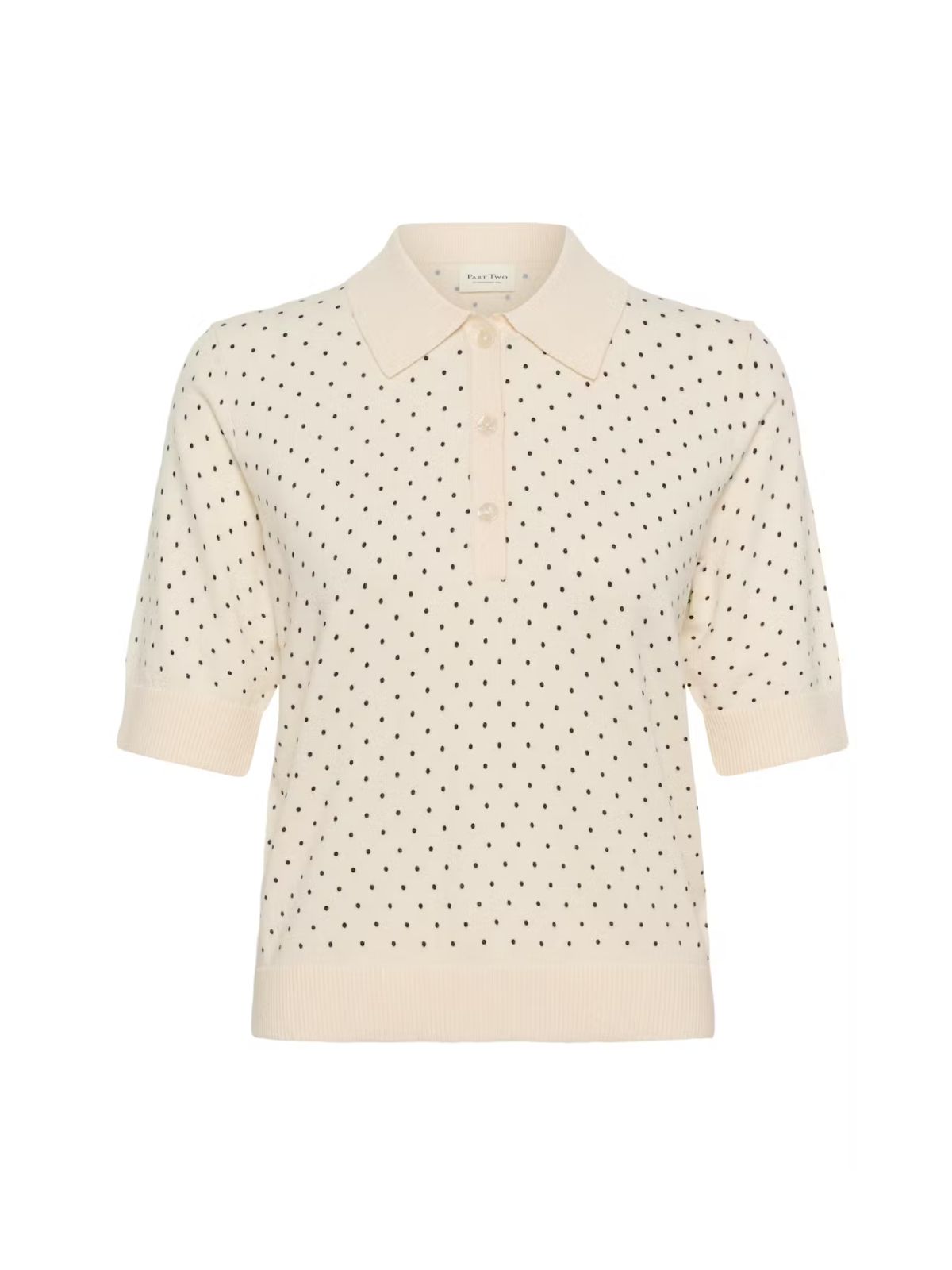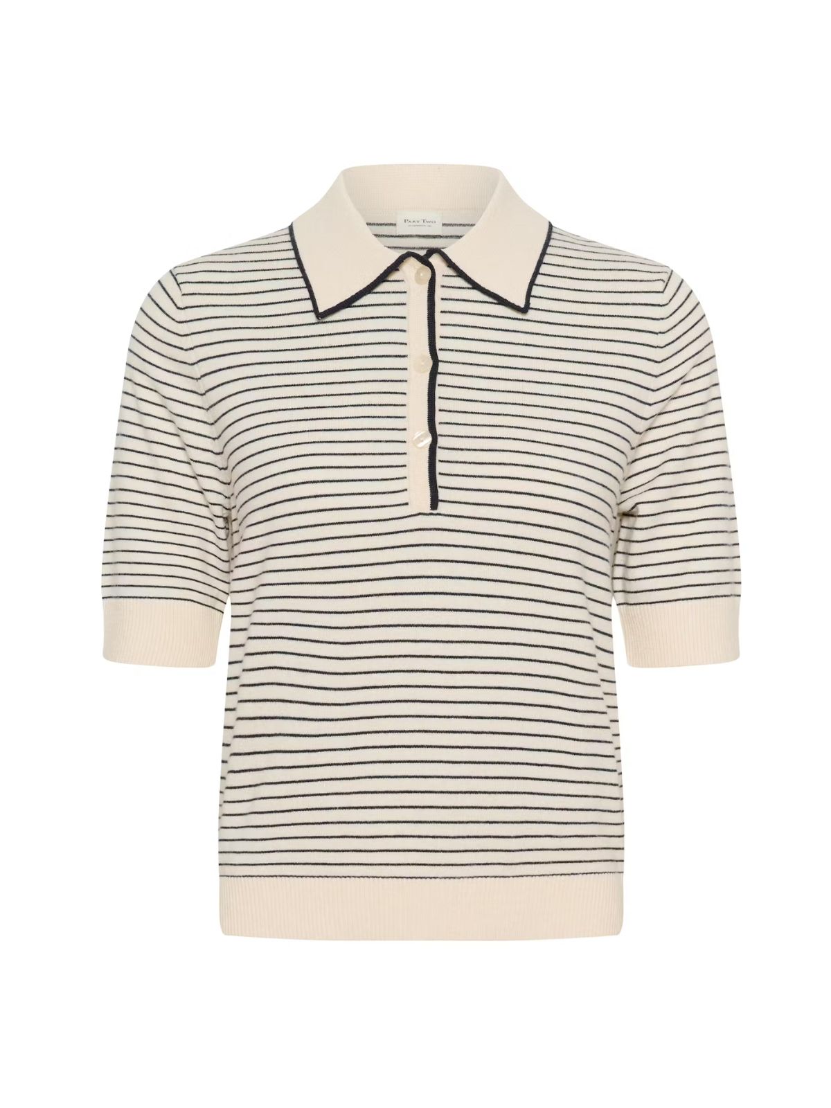 Klassisk polo fra PART TWO i forskellige farver og mønstre. Blusen har den velkendte krave samt stolpe lukning , et lige fit samt korte ærmer.Pasform: Regular Fit