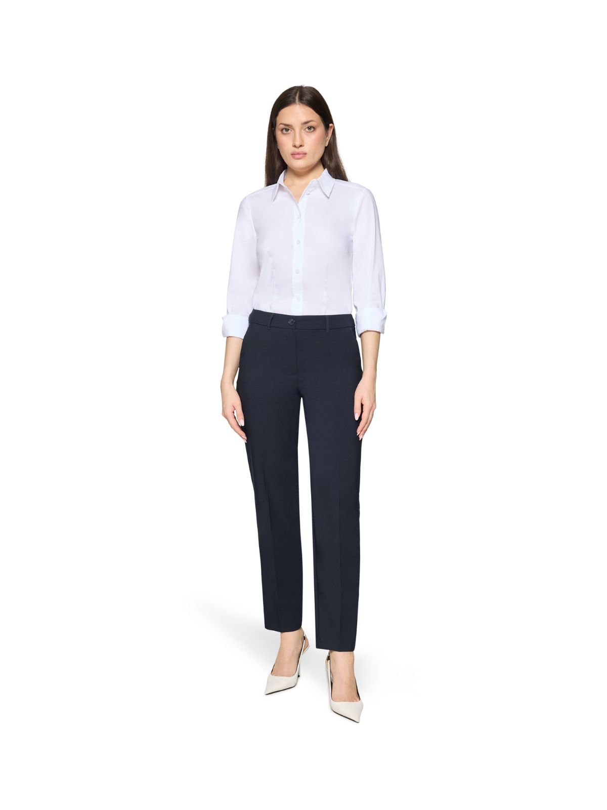 Klassisk smart buks fra Betty Barclay i ankel lang model samt i et enkelt design. Buksen har middel taljehøjde, bæltestropper samt paspollerede baglommer.Indvendig Benlængde: ca. 75 cm