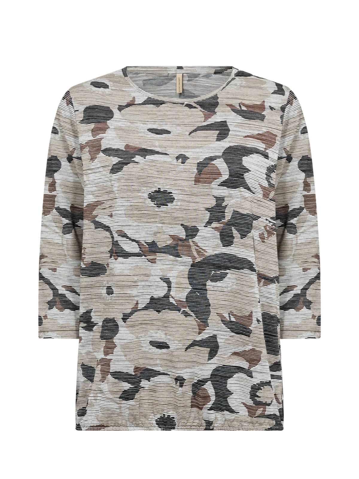 SC-GALINA 68 BLUSE er en elegant bluse med rund halsudskæring og trekvartærmer, designet med et stort blomsterprint og en struktureret finish, der giver et stilfuldt og moderne udtryk. Den bløde blanding af viskose, polyester og elastan sikrer komfort og let stretch, hvilket gør blusen behagelig hele dagen. Style den med skræddersyede bukser eller en nederdel for et sofistikeret look.
