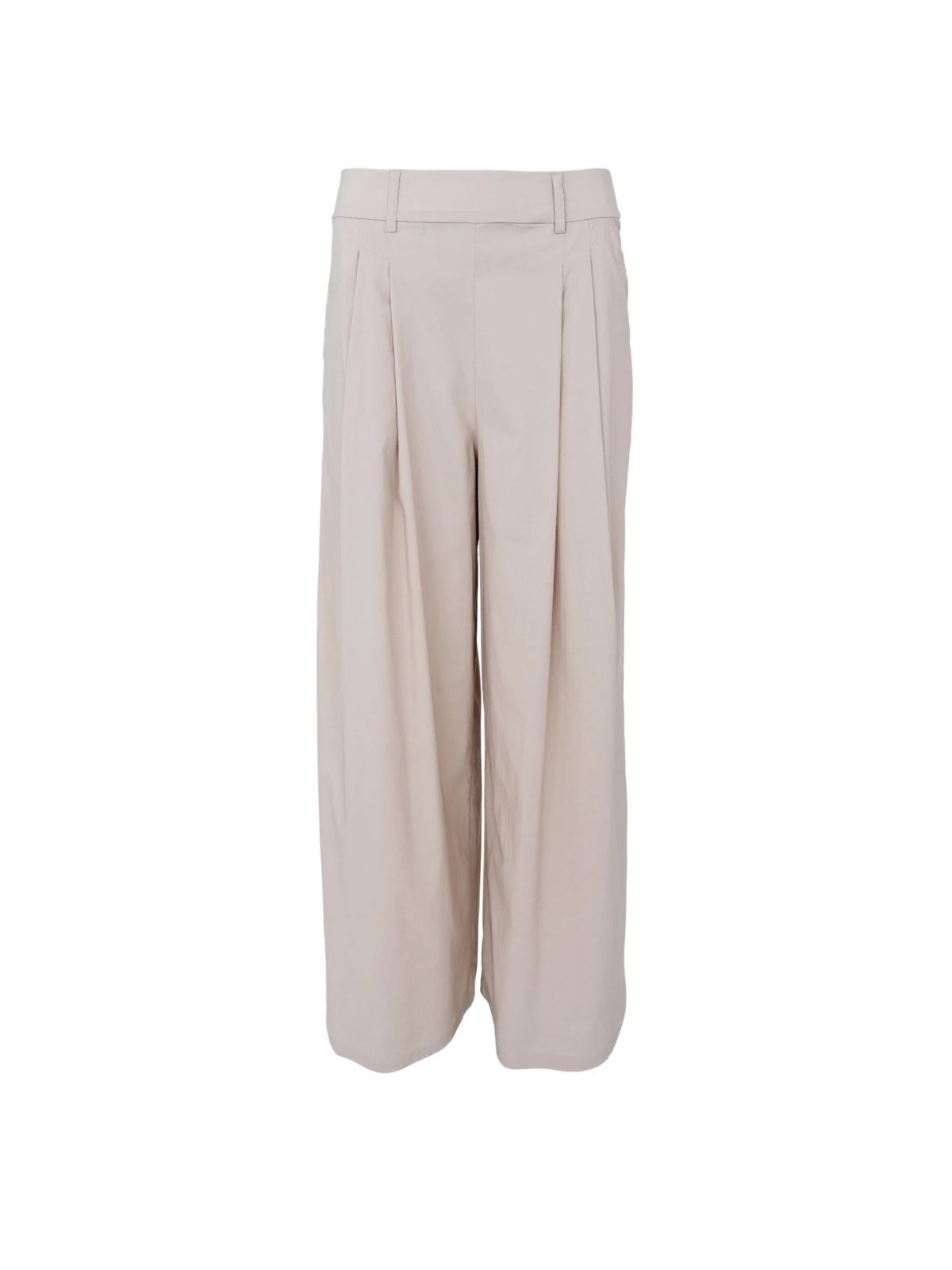 Stilfuld Davina wide leg bukser fra BLACK COLOUR nu med et ny twist. De fine læg foran tilfører et sofistikeret udtryk, mens den bløde, strækbare kvalitet sikrer optimal bevægelsesfrihed og en behagelig pasform. Den løstsiddende pasform giver et let og luftigt fald, perfekt til både hverdag og mere formelle anledninger.Indvendig Benlængde: 75 cm