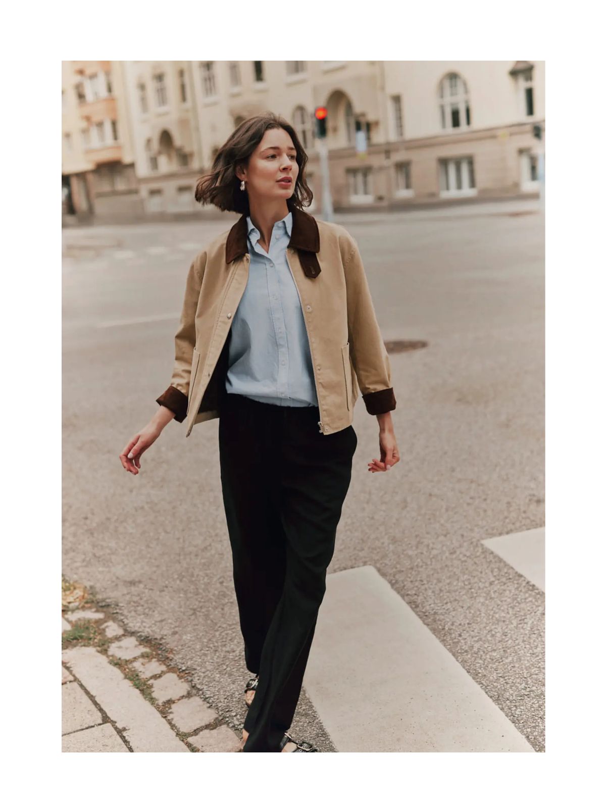 Cece Jacket er en moderne fortolkning af en klassisk jakke, der kombinerer funktionalitet med enkel elegance. Den har en kontrastfarvet cordfløjls-krave, en ren snap-lukning foran og rummelige patchlommer, der gør den praktisk til hverdagens behov.