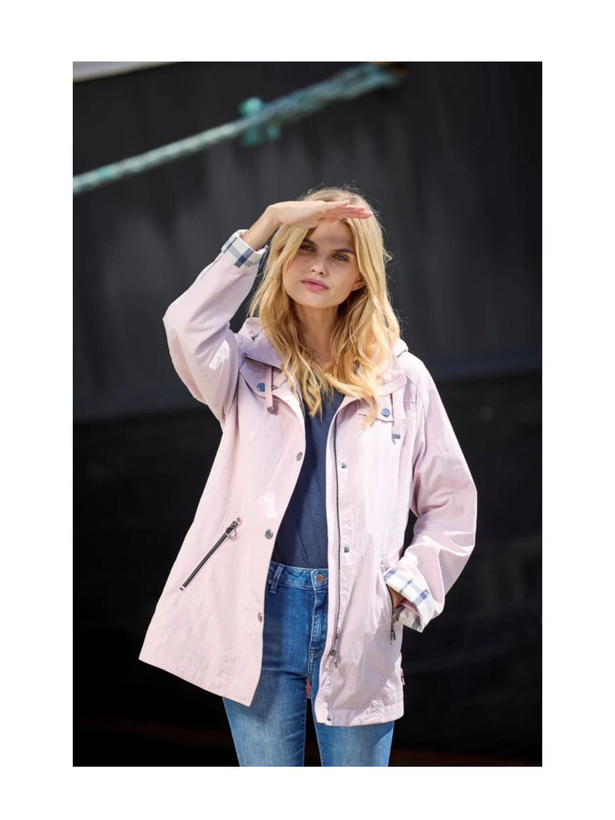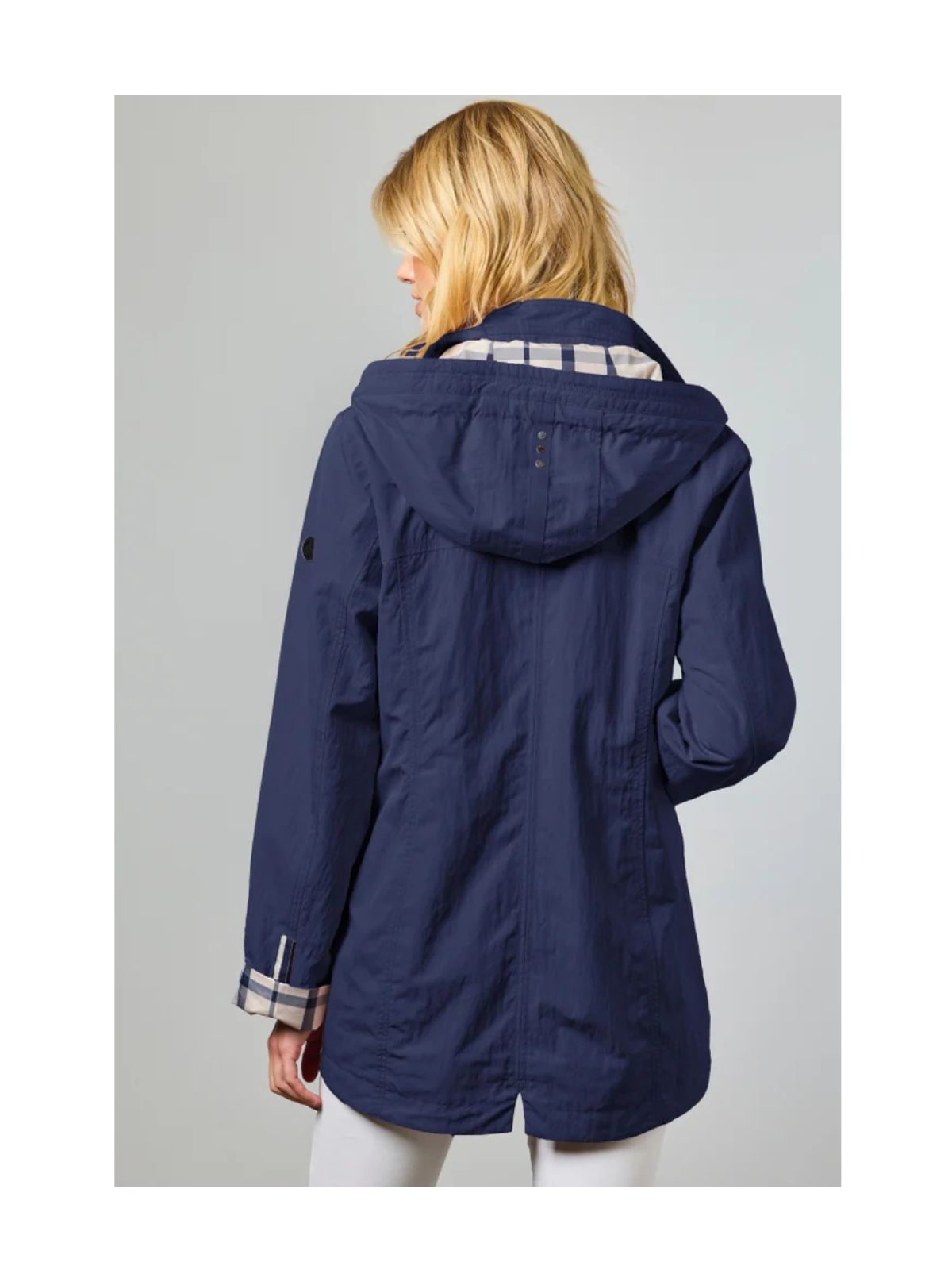 Jakken foret med ternet foer på overkroppen, indvendig manchet og i hætten, som også er aftagelig for fleksibilitet.