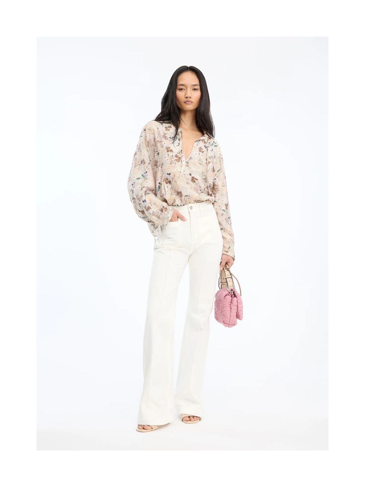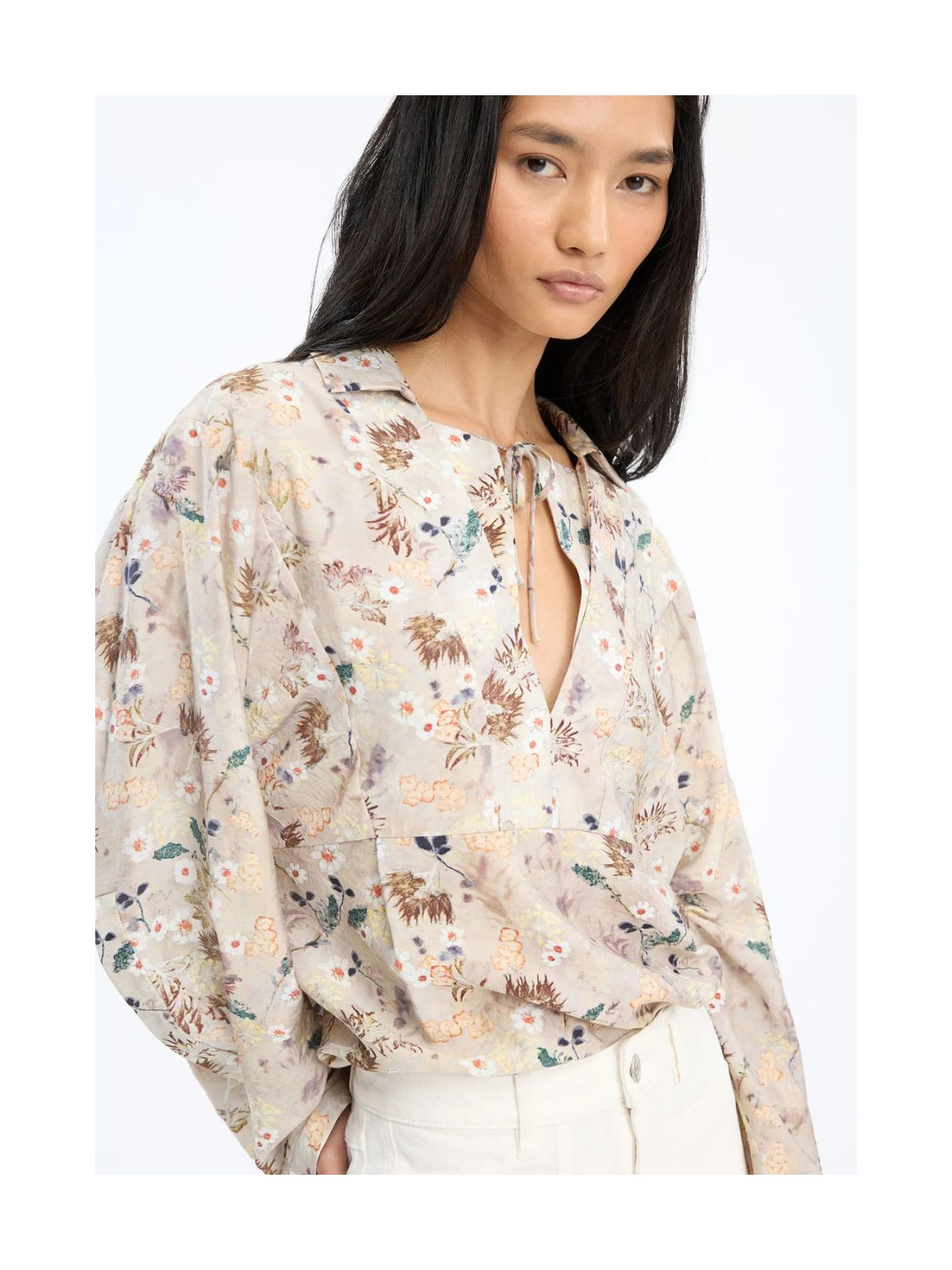 Elegant bluse fra MUNTHE i en let kvalitet med et naturinspireret print. Blusen har en krave samt løs pasform og justerbare snoredetaljer ved ærmerne.Pasform: Loose Fit