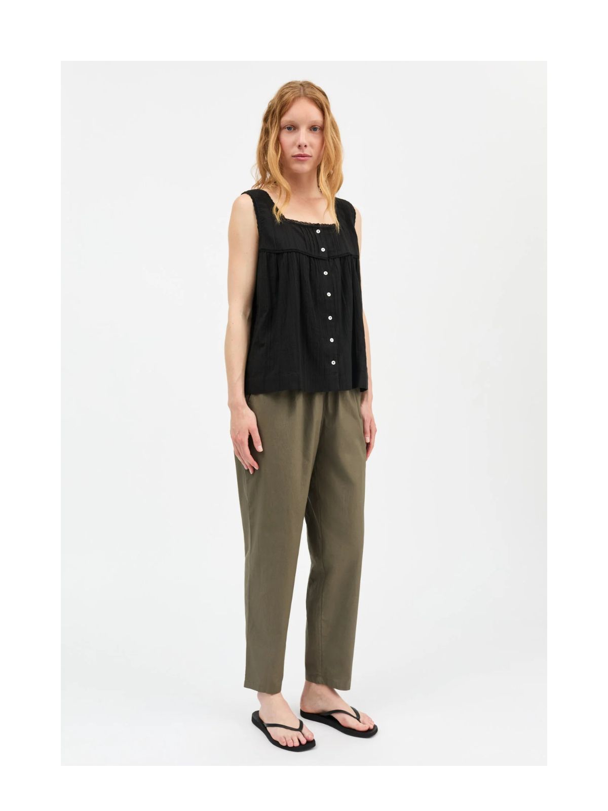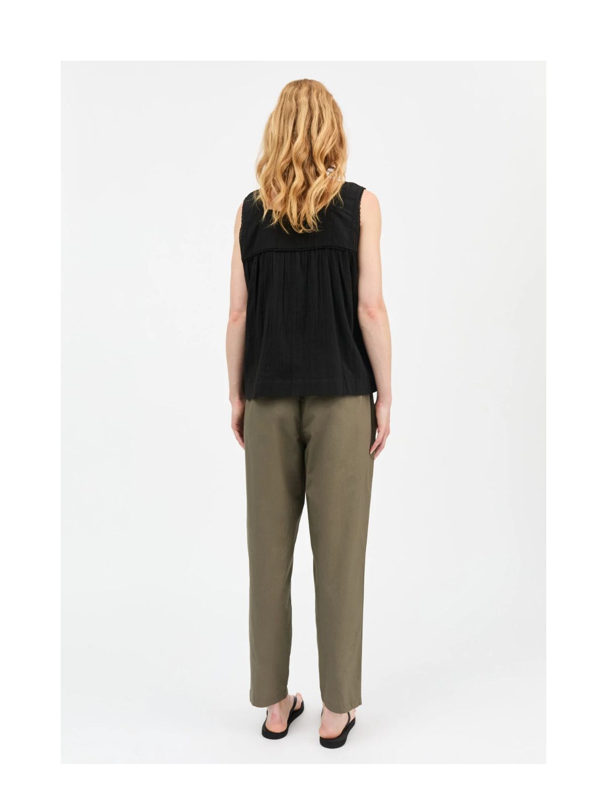 Smart croppet buks med elastisk talje fra SKALL i komfortabelt design med stiklommer og baglommeeffekt uden funktion.Indvendig Benlængde: ca. 72 cm - målt i str. 40