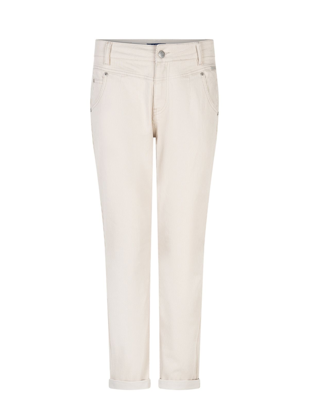 Disse stripede Pepple-bukser kombinerer komfort med et stilrent, moderne look. Med høj talje, regular fit og let tilspidsede ben fremhæver de silhuetten på en flatterende måde. Materialeblandingen af BCI-certificeret bomuld, genanvendt polyester, viscose og elastan sikrer blødhed, stræk og holdbarhed, mens det diskrete stribemønster tilfører et levende og moderne touch. Bukserne kan styles både rullede op for et afslappet look eller i fuld længde for et mere klassisk udtryk.