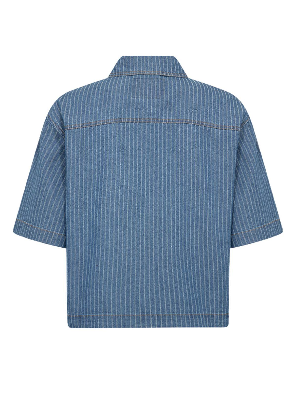 Smart kort denim jakke fra SOYA i pinestripe design. Jakken har krave, metalknap lukning. markante brystlommer samt korte brede ærmer.Længde: ca. 60 cm