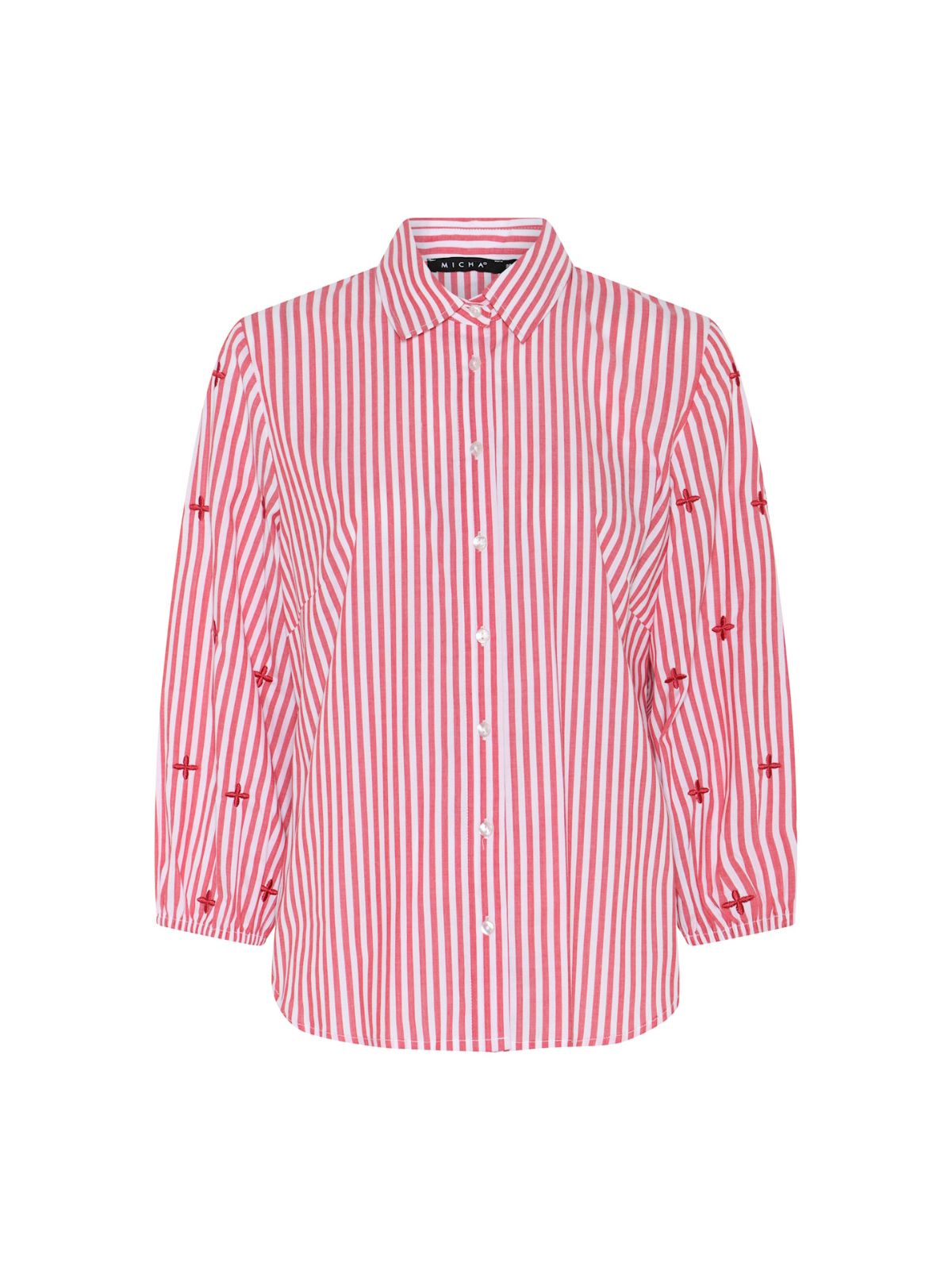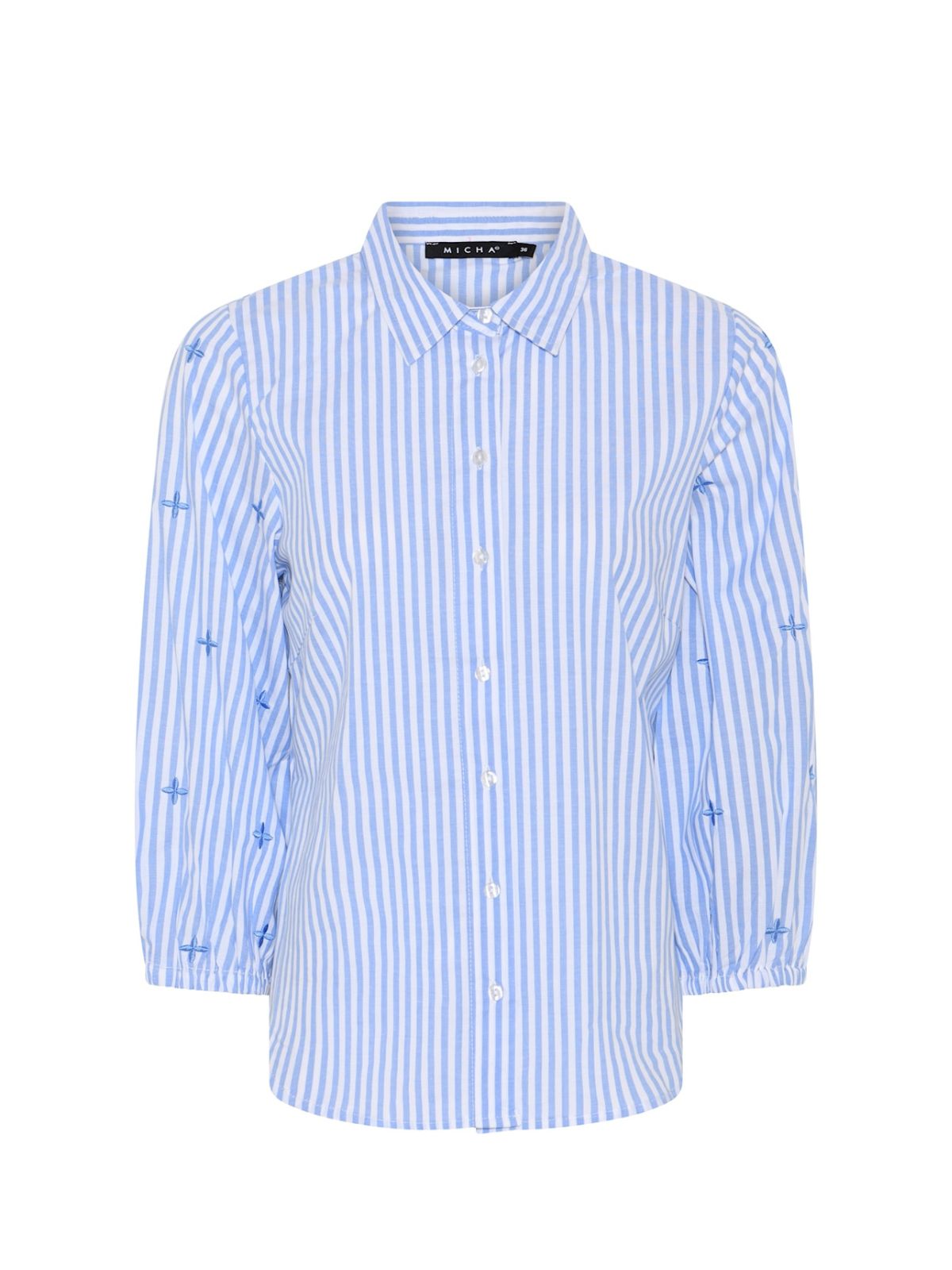 Feminin stribet skjorte fra MICHA i design med klassisk krave, knaplukning samt lange ærmer med elastisk kant.Længde: ca. 60 cm
