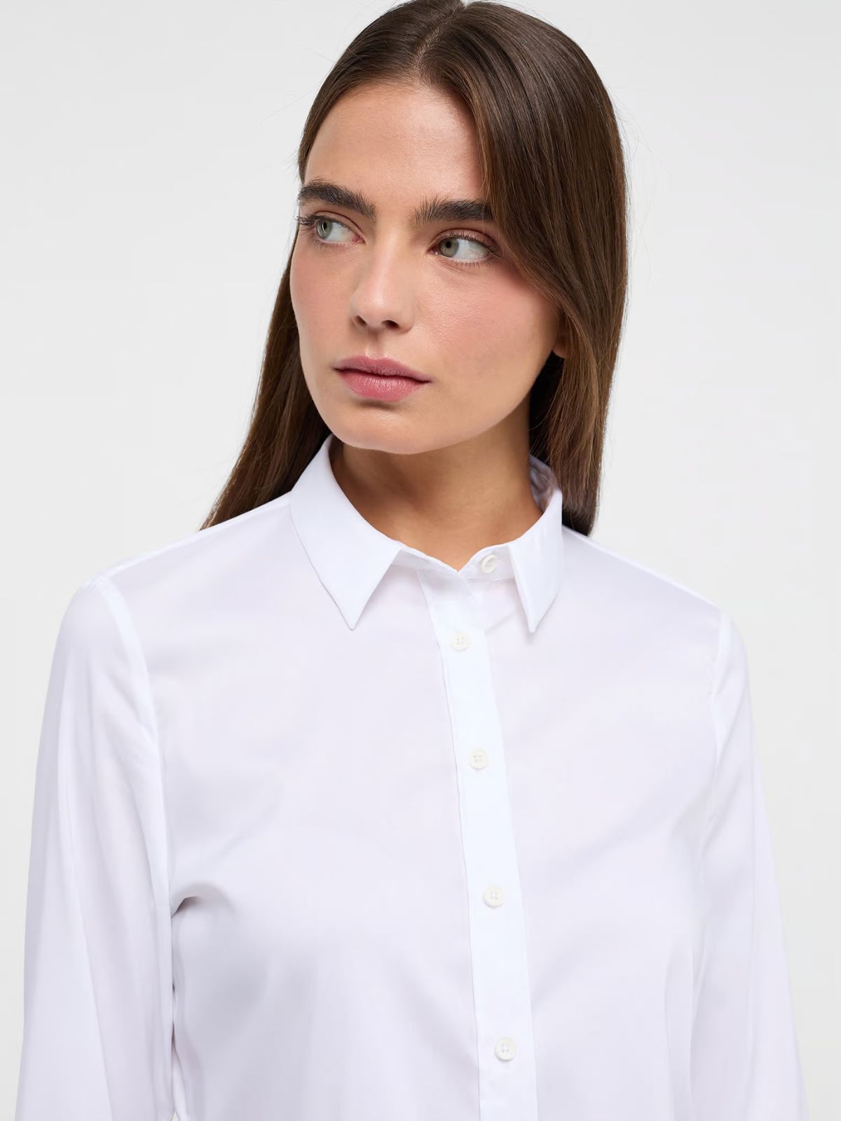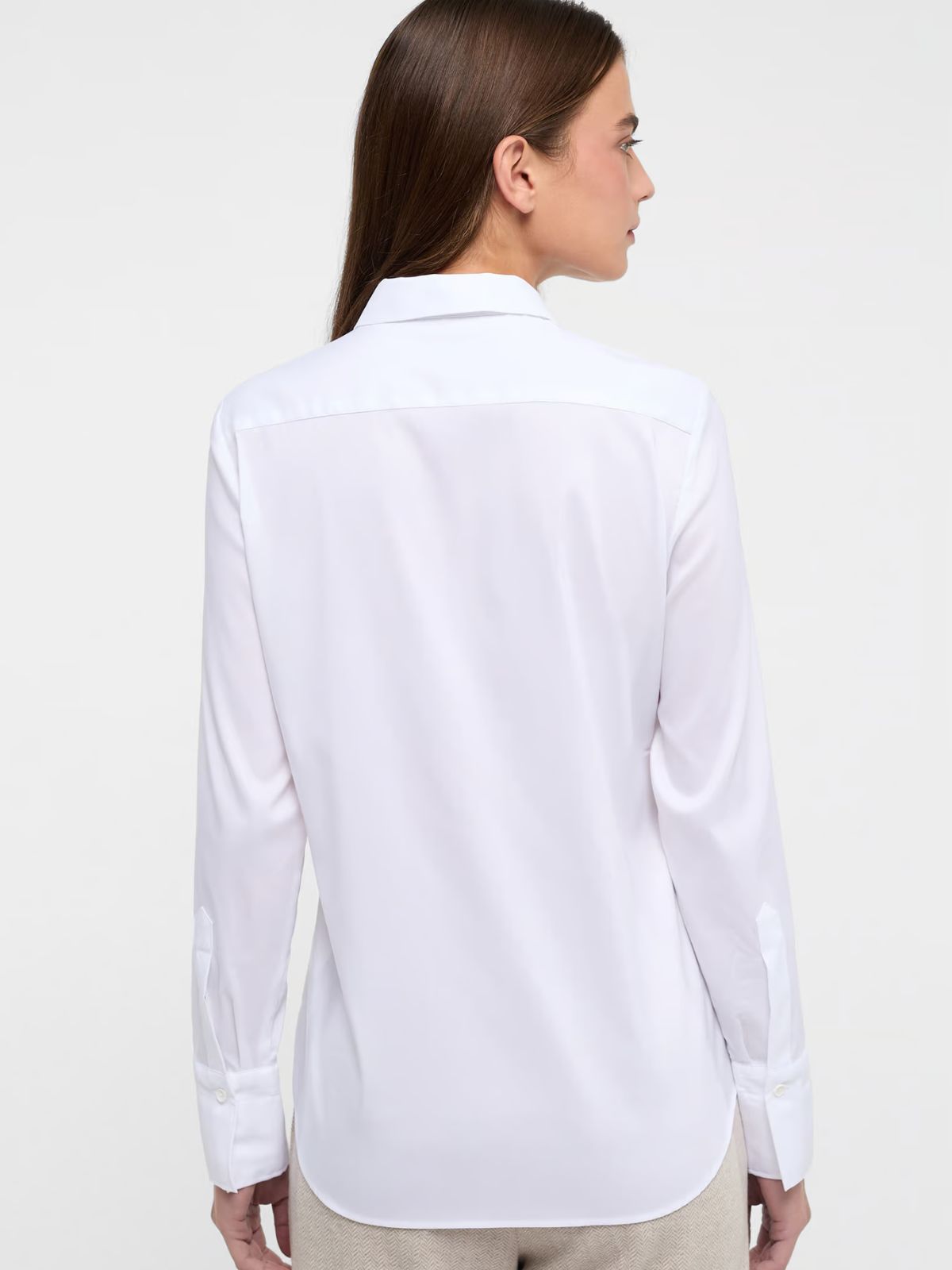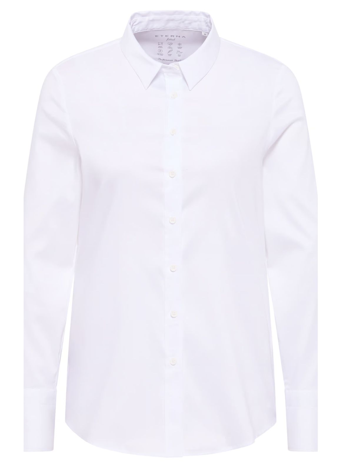 Feminin skjortebluse fra ETERNA i klassisk let taljeret design med cute away krave i en behagelig kvalitet. Skjorteblusen har gennemgående knaplukning samt taljering og lange ærmer med bred manchet. Et " Must Have " til din garderobe.