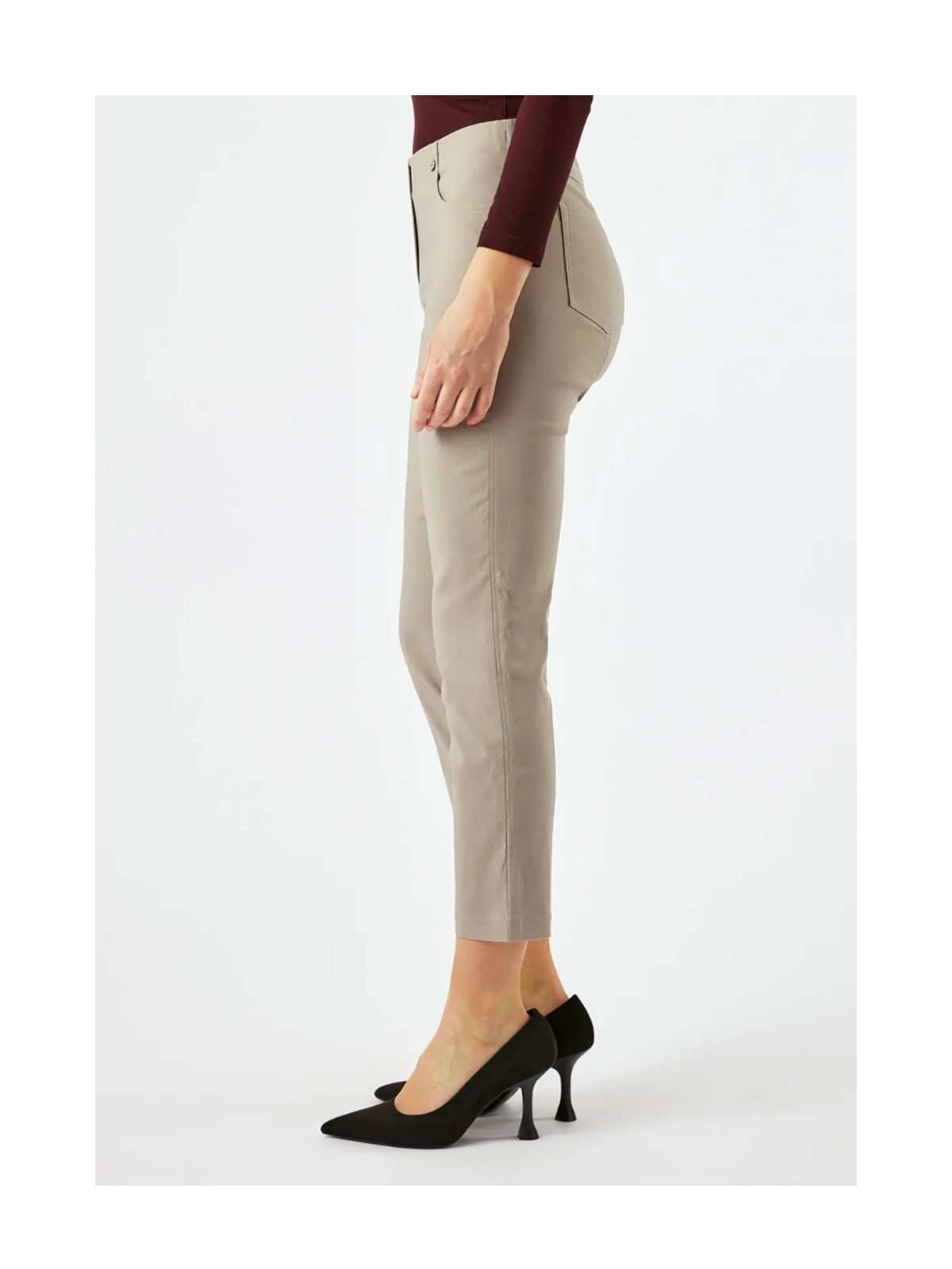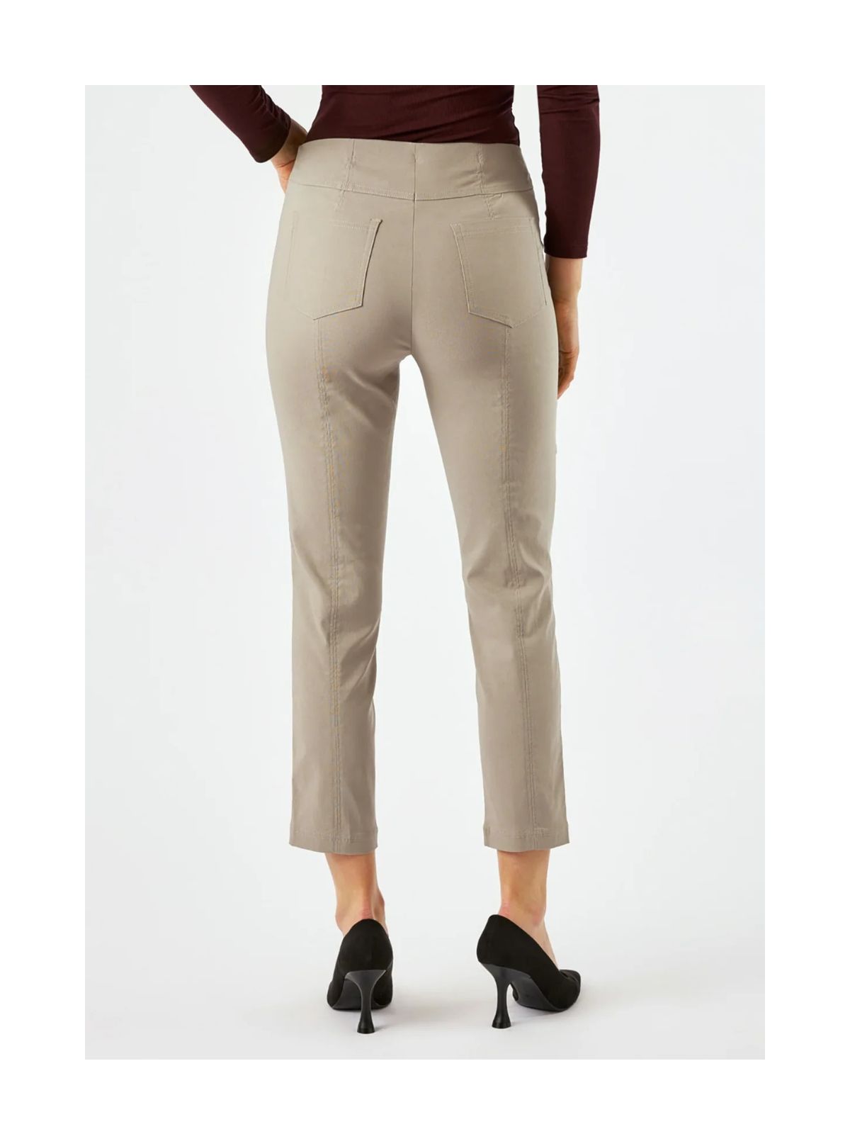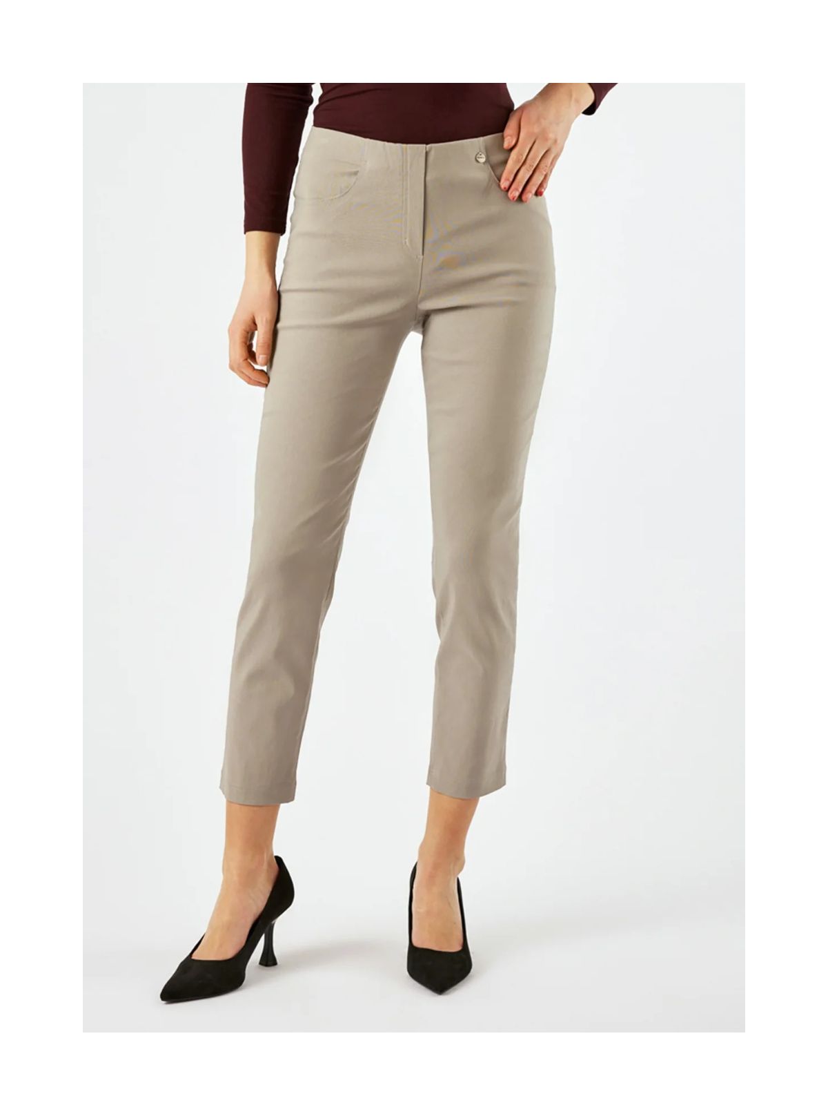 Bella 09 P buksen er designet i en fleksibel bengalinkvalitet, der giver en komfortabel og velsiddende pasform hele dagen. Den mediumhøje talje og det lige bensnit skaber et tidløst og klassisk udtryk, som passer til mange forskellige outfits og anledninger. Materialets stræk gør buksen behagelig at have på og sikrer samtidig, at den holder sin form uden at stramme. Denne udgave er opdateret med praktiske forlommer, som tilfører både funktionalitet og et mere afslappet look, mens de formgivende baglommer giver en flot silhuet og et pænt fald. Den kortere benlængde gør modellen alsidig og nem at style til både hverdag og mere velklædte lejligheder.
