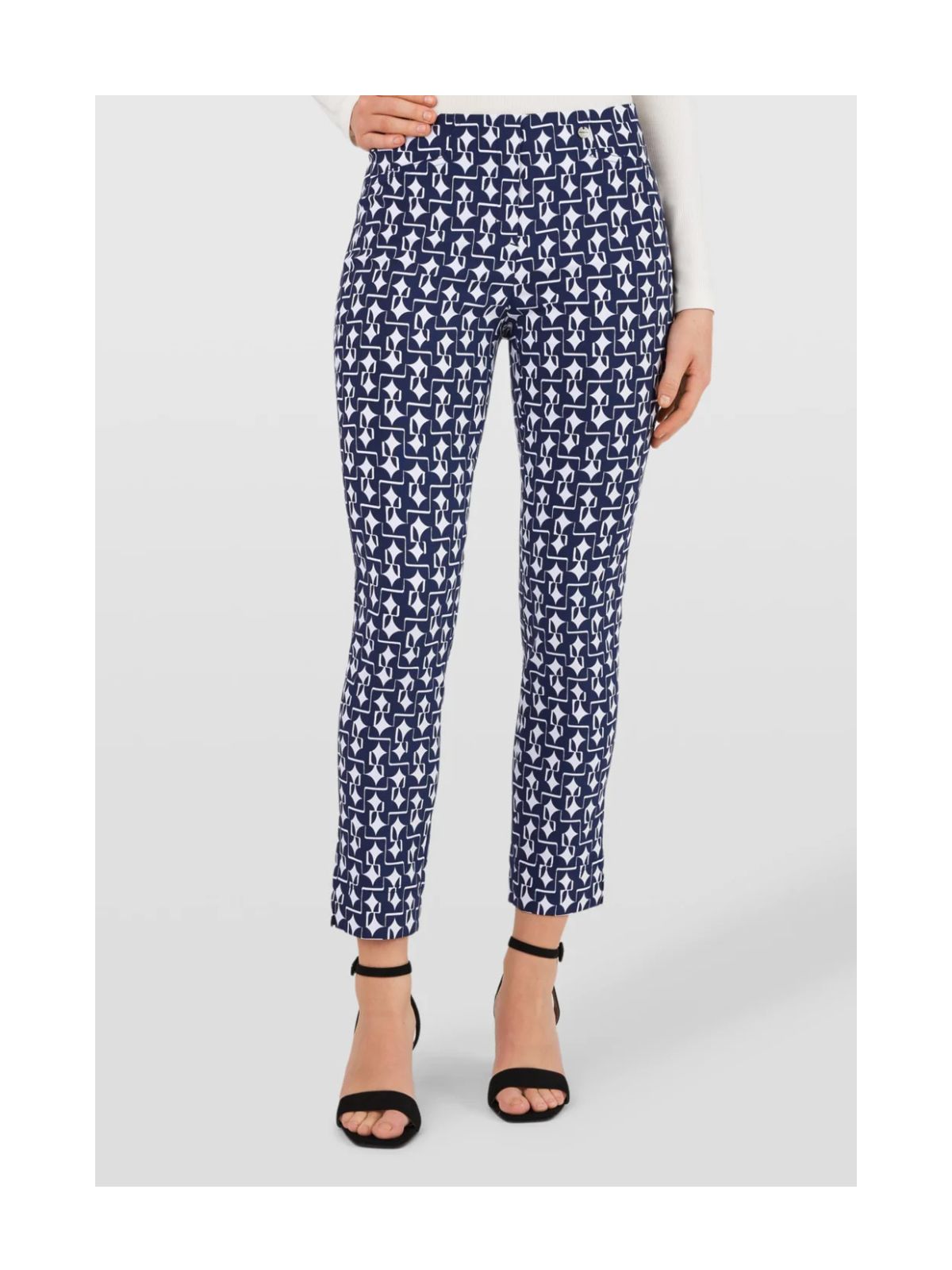 Rose 09 bukserne kombinerer et moderne udtryk med høj komfort. Det grafiske, geometriske print giver et stilfuldt og iøjnefaldende look, mens den ankellange længde gør modellen perfekt til de varmere måneder. Den tætsiddende pasform fremhæver silhuetten på en flatterende måde, og den strækbare kvalitet sikrer, at bukserne føles behagelige hele dagen. Den brede elastik i taljen giver en fleksibel pasform, mens slidsen nederst på benet tilfører et let og elegant finish. Et oplagt valg til både hverdag og sommerens arrangementer.