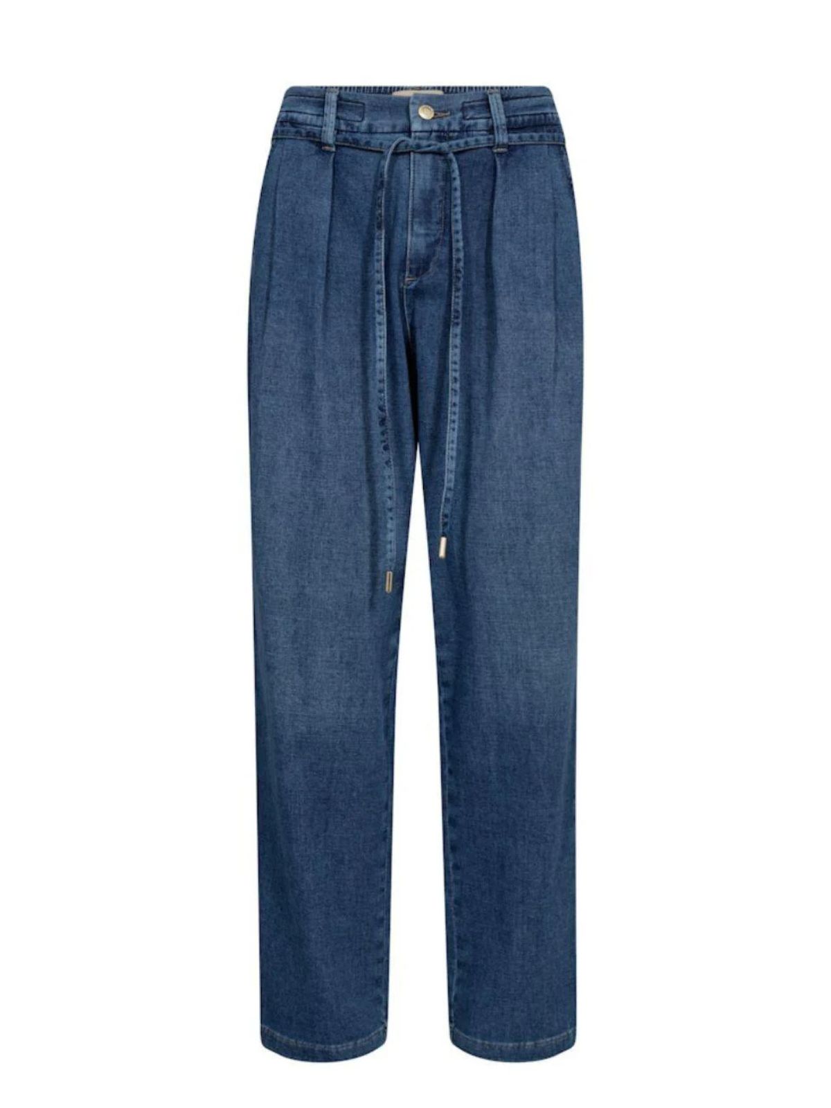 Cool jeans fra MOS MOSH kombineret med et afslappet look. Bukserne er dejligt løse med elastik bagpå i taljen for optimal komfort. Praktiske sidelommer og ombuk forneden giver et afslappet finish. Modellen er rummelig, præcis som den skal være, og det tynde, aftagelige bindebånd i taljen giver mulighed for at tilpasse pasforme. Komfortable, stilfulde og ideelle til enhver lejlighed.Pasform: Loose Fit