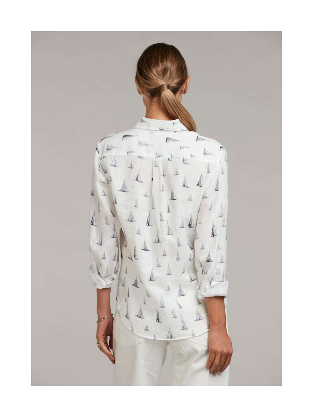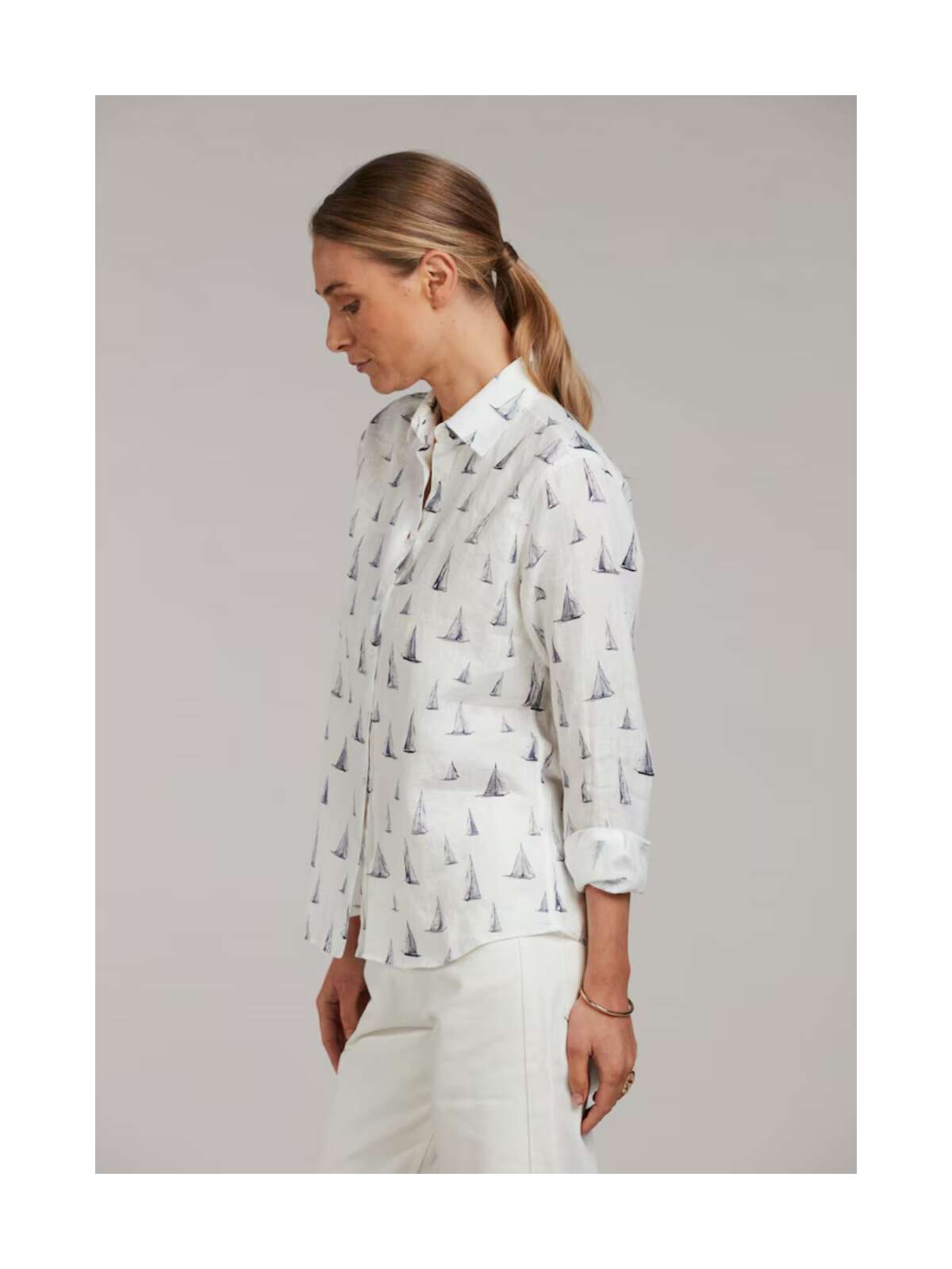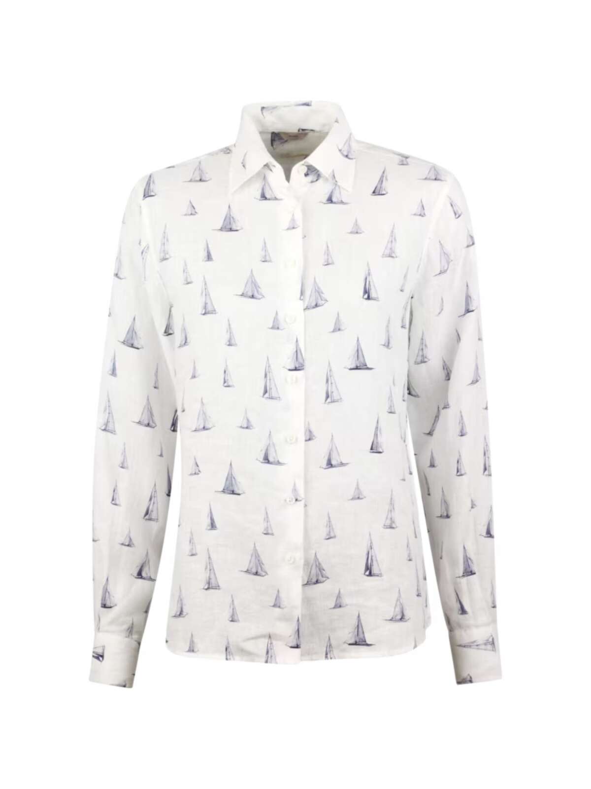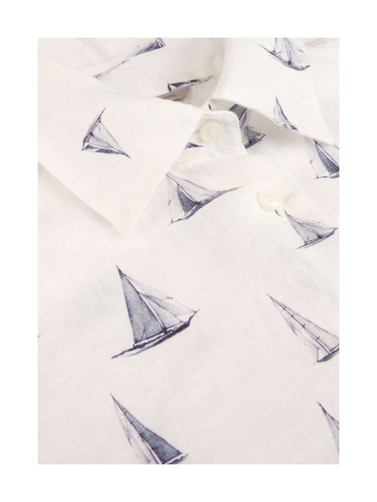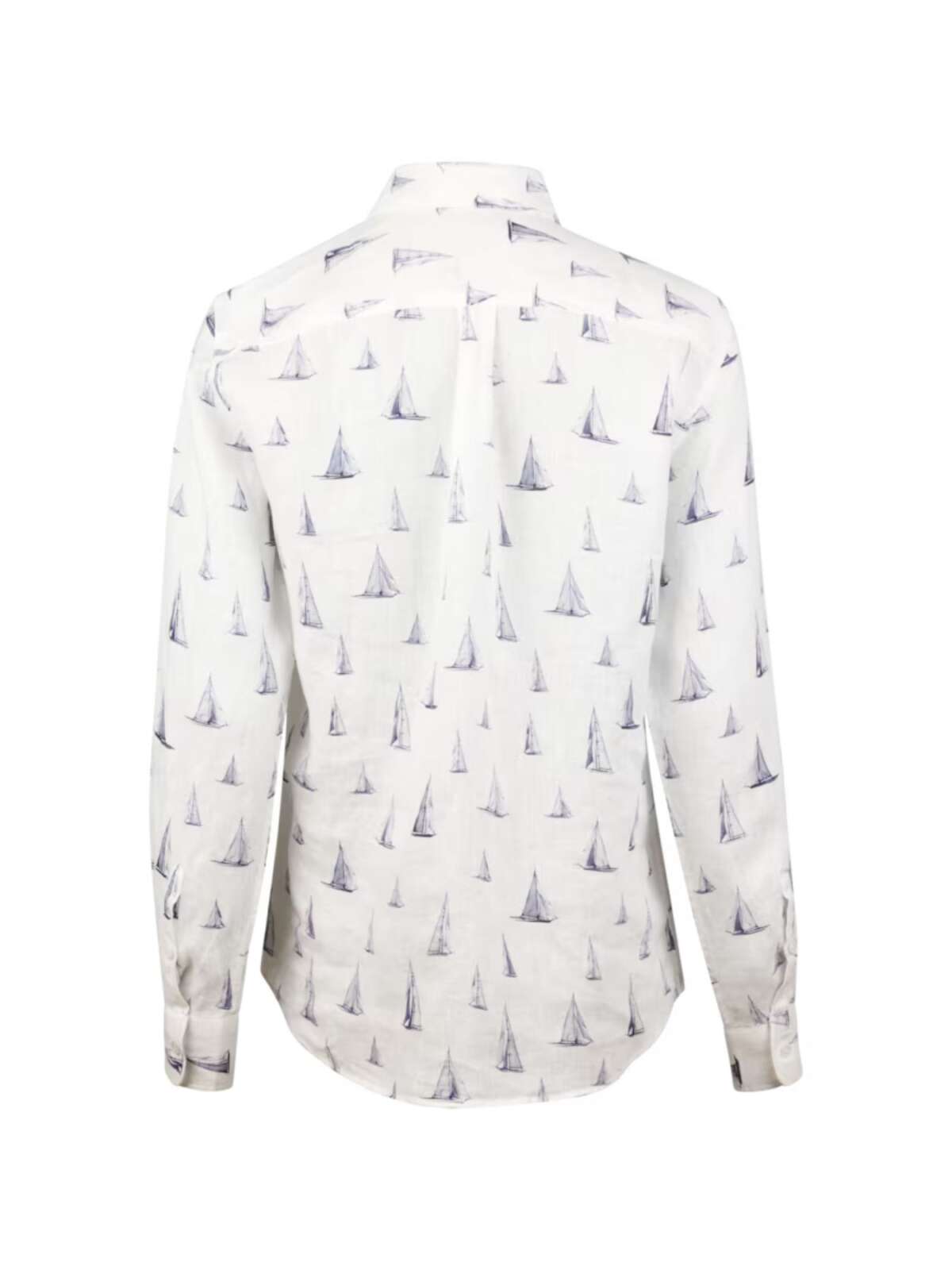 Maritim inspireret hør skjorte fra STENSTRØMS med sejlskibs mønster i en afslappet pasform. Skjorten er detaljeret med perlemorsknapper, enkle manchetter og en klassisk krave.Længde: ca. 65 cm