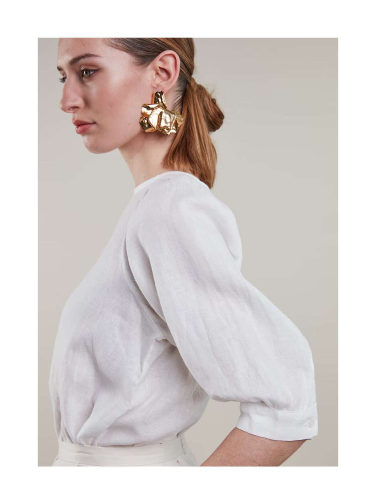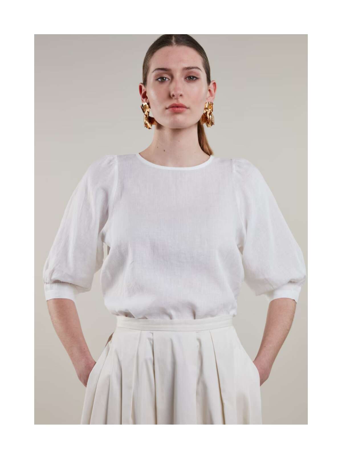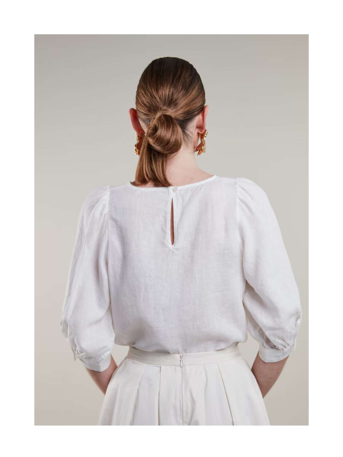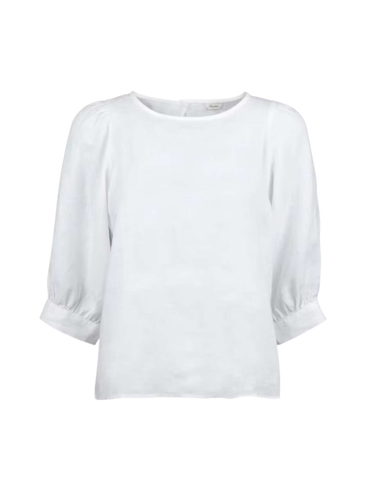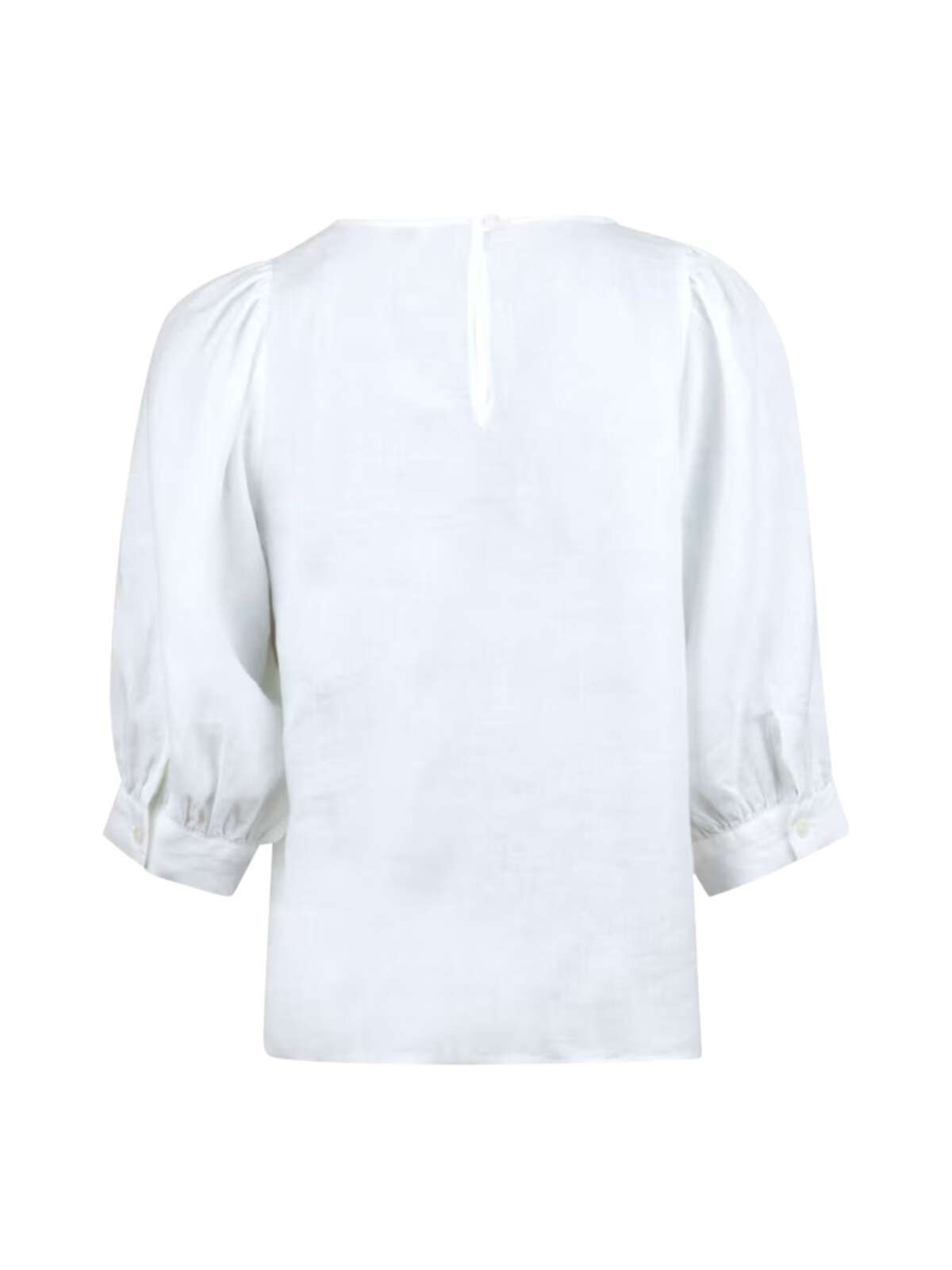 Elegant hør bluse fra Stenstrøms i feminin design med rund hals med knaplukning bagtil, et lige snit samt albuelange puf ærmer med bred manchet kant.Længde: ca. 60 cm