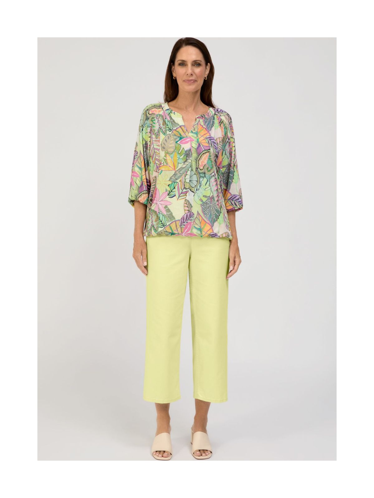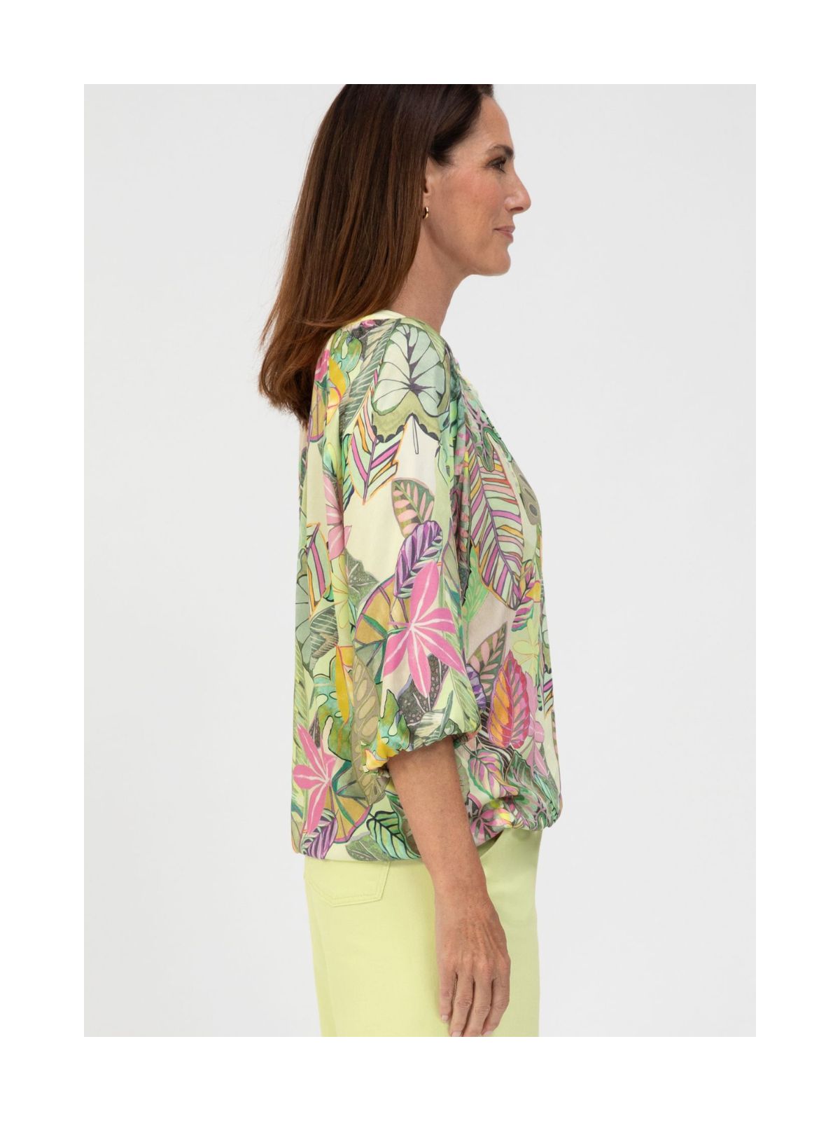 Rana slip-on bluse fra BIANCA er en moderigtig ledsager. Blusen imponerer med sit trendy bladdesign og behagelige, afslappede pasform. Den diskret rynkede tunika-udskæring giver et moderne touch. Praktiske detaljer som den elastiske kant forneden og trekvartærmerne sikrer en behagelig pasform og fuldender designet på en stilfuld måde. En alsidig favorit, perfekt til smarte outfits eller afslappede hverdagslooks.Længde: ca. 62 cm
