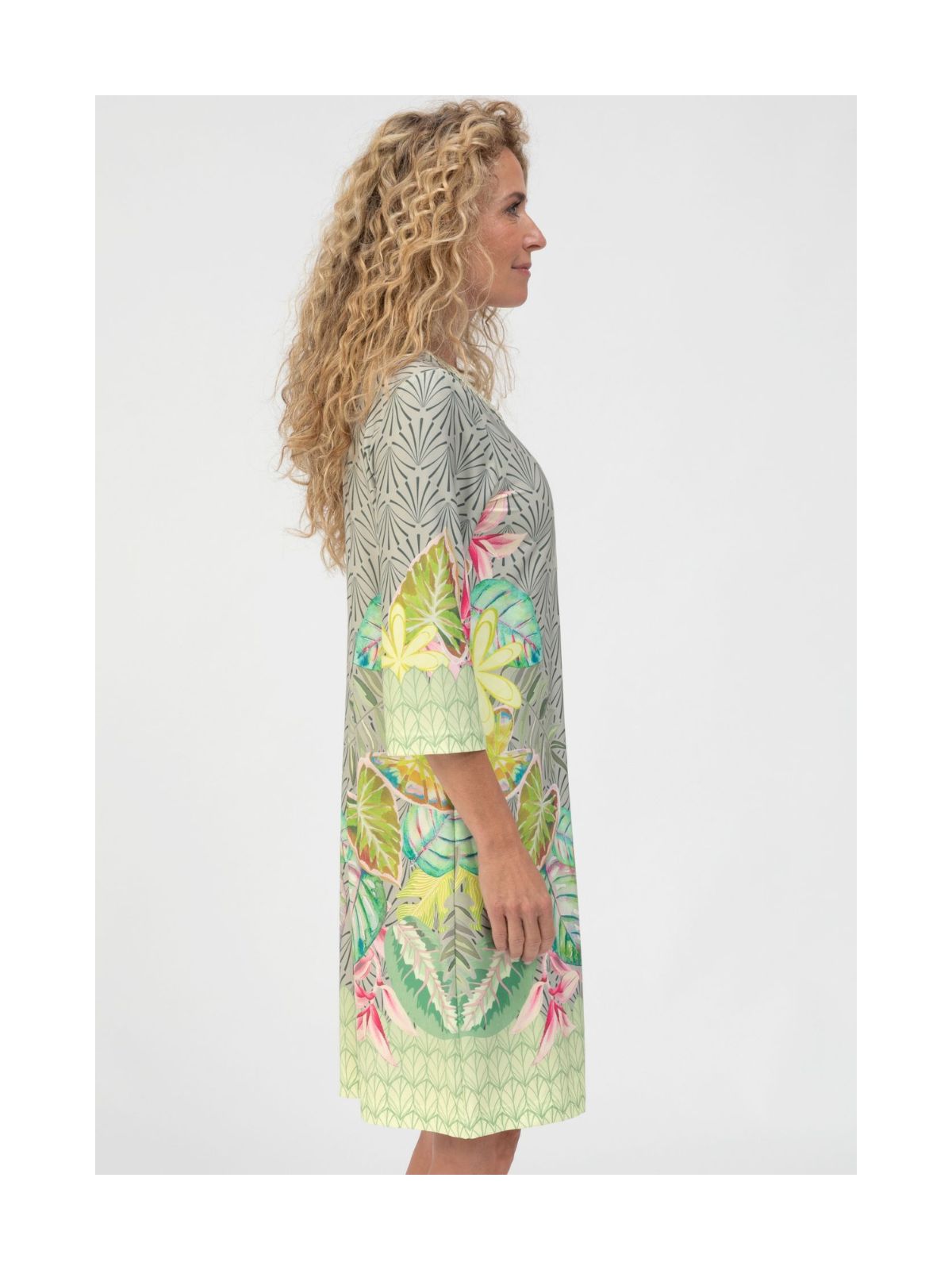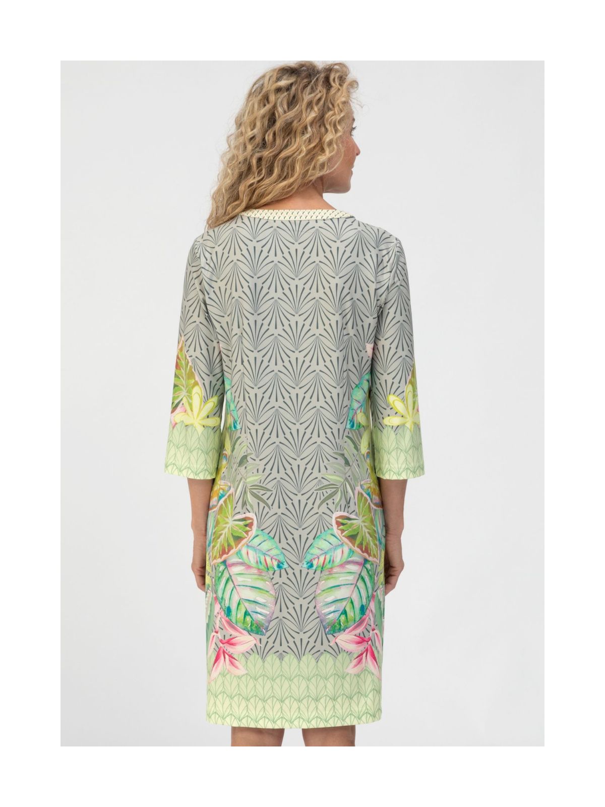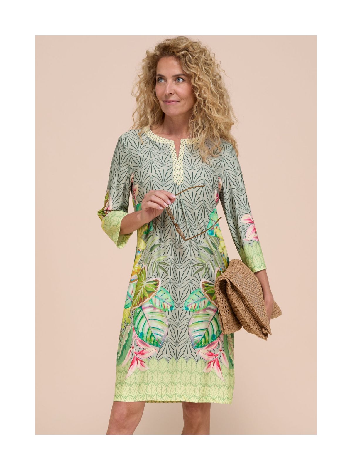 Danilo kjolen fra BIANCA imponerer med sit moderne print i sæsonens mest trendy farver! Den høje kvalitets af letplejede stofblanding med elastan og den afslappede pasform sikrer en behagelig fornemmelse. Et særligt højdepunkt er den dekorative kant ved tunikaudskæringen og kanterne på kjolen og ærmerne. Uanset om du klæder dig elegant til din næste fest eller afslappet til hverdag, er Danilo en alsidig ledsager til mange lejligheder.Længde: ca. 94 cm / For størrelse 38: længde ca. 94 cm, fra størrelse 40 ca. 1 cm længere pr. størrelse.