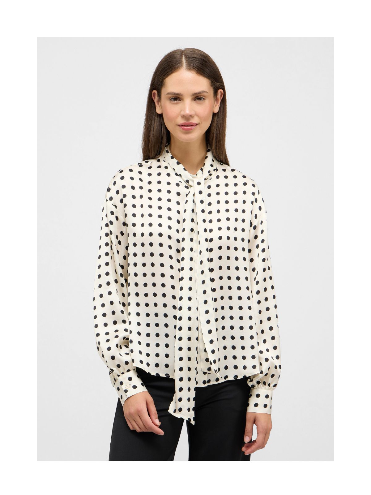 Denne prikkede skjorte fra Spring/Summer 2026-kollektionen er designet med et elegant bindebånd om halsen, der tilføjer et feminint touch. Fremstillet i 100% viscose, har skjorten en let og blød kvalitet, der falder smukt og giver komfort hele dagen. Den klassiske hvide farve med diskrete prikker gør den nem at style til både hverdag og mere polished outfits.