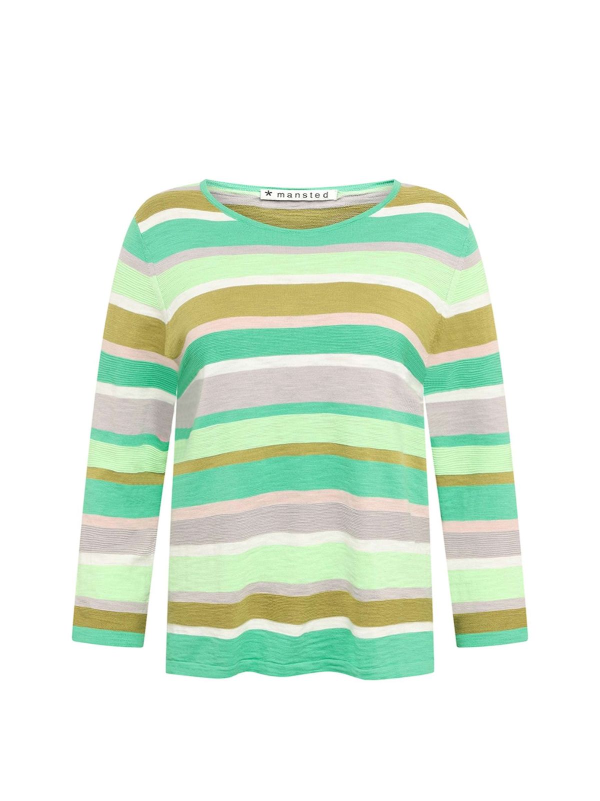 Casual smart stribet strik fra MANSTED i klare farver samt i en komfortabel glat strik. Strikkern har rund hals samt lange ærmer og slidser i siden.Længde: ca. 61 cm
