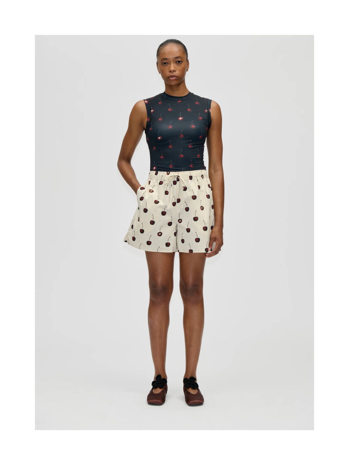 Feminine remefarvede shorts fra STINE GOYA med kirsebærprint, elastisk talje og justerbar snøre. Fuldend looket med den matchende skjorte eller ensfarvet top.Farve: CHERRIES