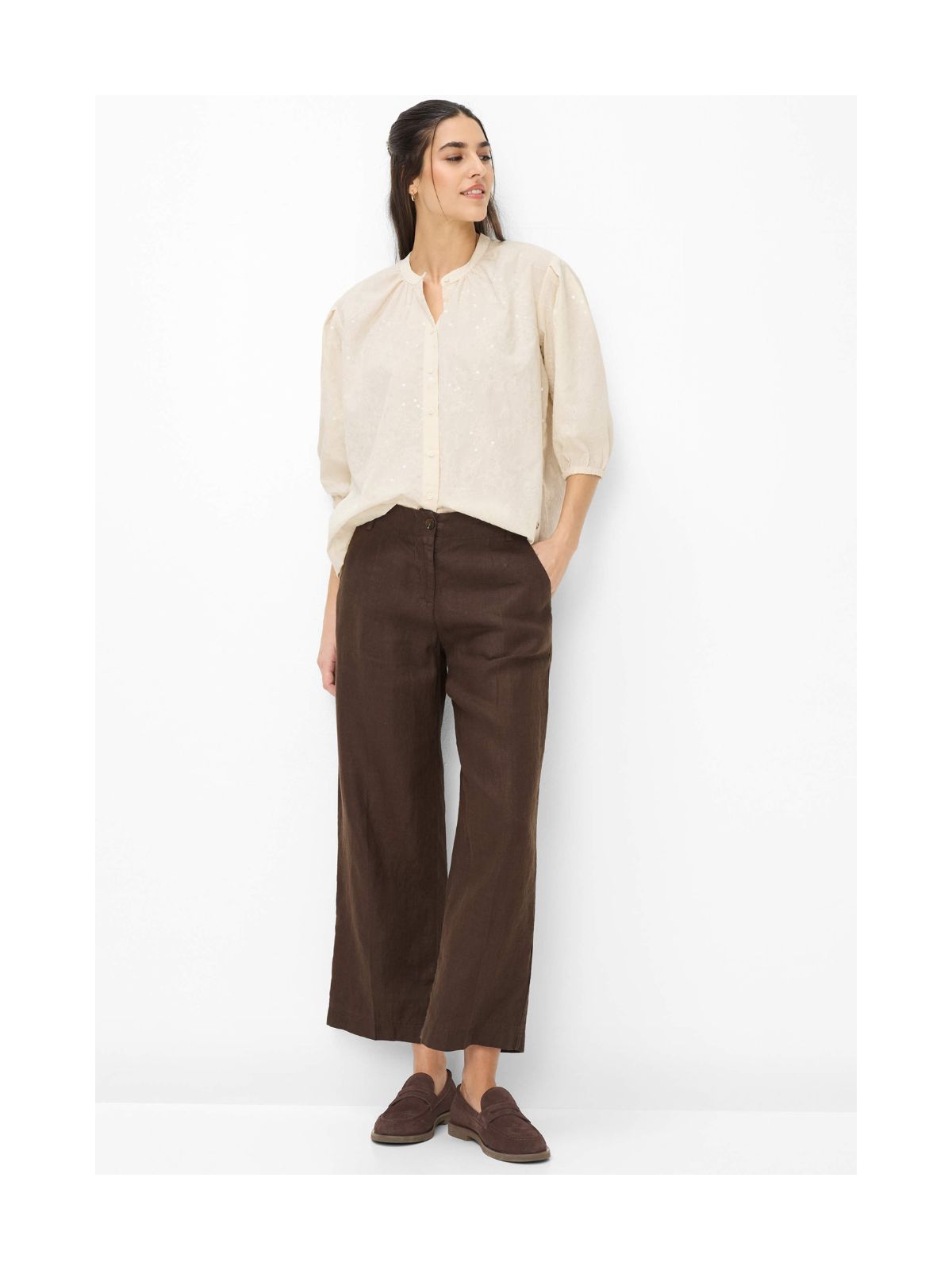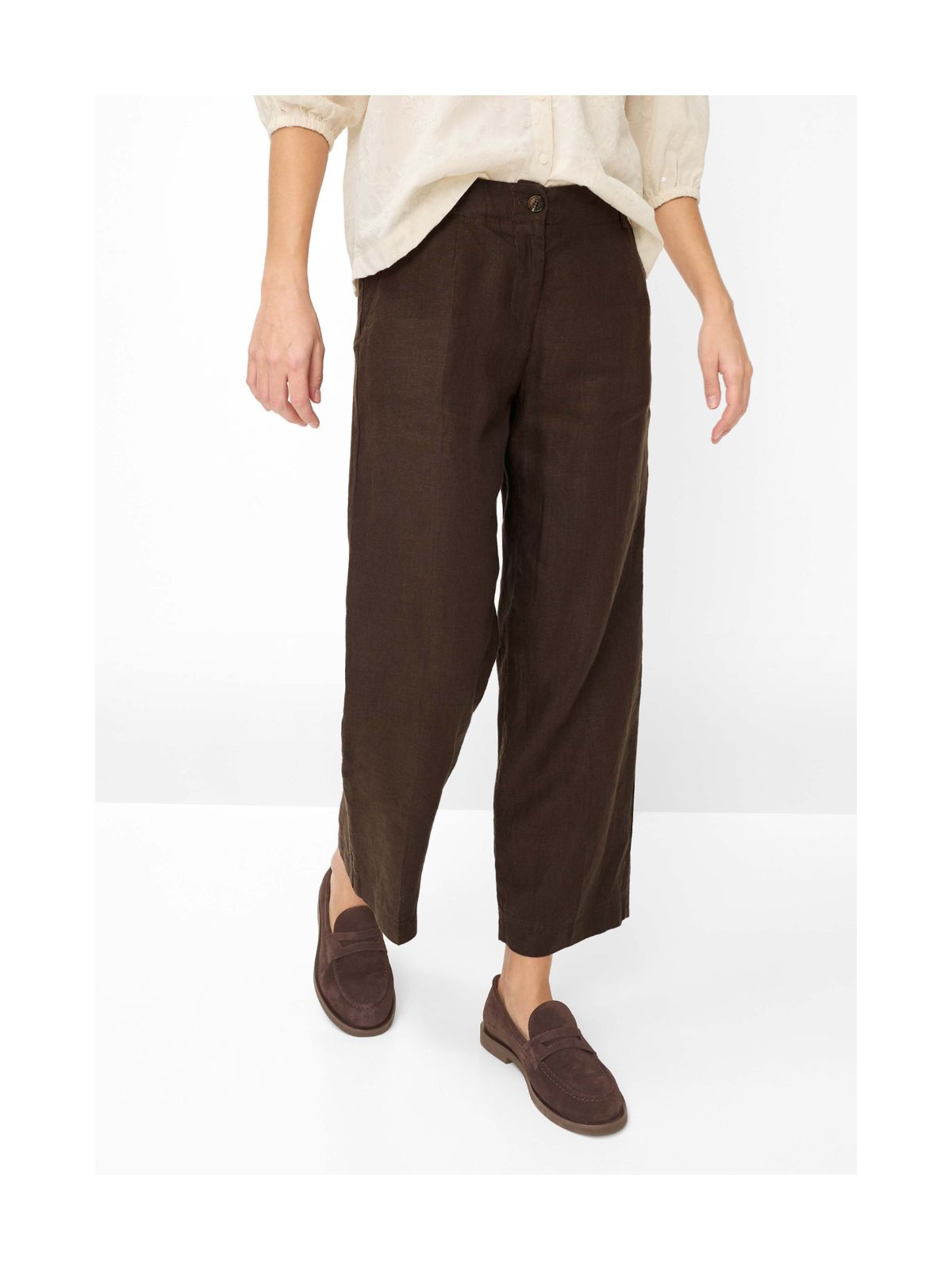 Casual hør buks fra BRAX i ankel langt design med bredde ben. Buksen har normal talje, knaplukning samt baglommer og bæltestropper.Indvendig Benlængde: ca. 74 cm