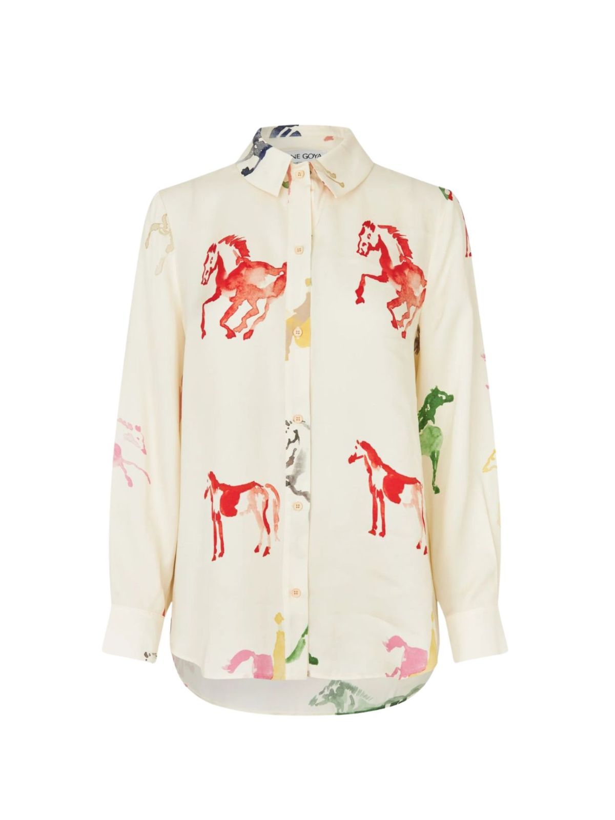 Sofistikeret skjorte fra STINE GOYA i afslappet pasform med håndmalet hestemotiv. Skjorten er designet med klassisk krave, gennemgående knaplukning og lange ærmer med manchetter. Fremstillet i en blød og let TENCEL™ Lyocell- og viskoseblanding. Style med de matchende bukser for et komplet look.Længde: ca. 70 cm